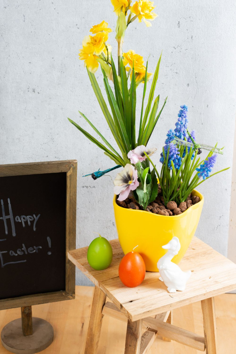 Spring is in the air! Daffodils and grape hyacinths are typical spring flowers. Arranged in a colour-coordinated planter, they bring Easter cheer into your home. The egg-shaped candles perfectly round off the ensemble. Shop the look!