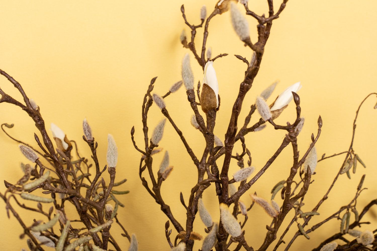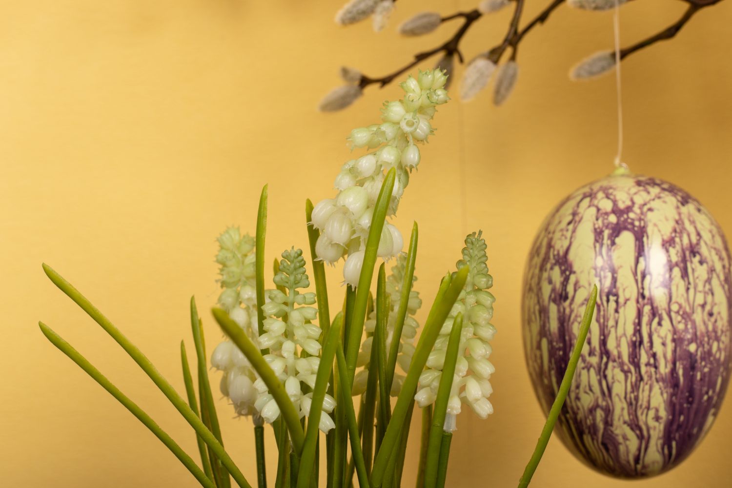 Plain and natural! This look comes in 3 variations that build on each other. The long winter is finally over and the first rays of sunshine conjure up the first blossoms in nature. At last it is getting warm again! The magnolias and birch twigs look like they were picked by hand and are perfect for hanging a few Easter eggs on. White hyacinths are really rare to see in nature. Here they go particularly well with the white fluffy buds of the magnolia. Our versatile Easter decoration can be complemented with forsythia and lilac. So the look never gets boring! Shop the look!