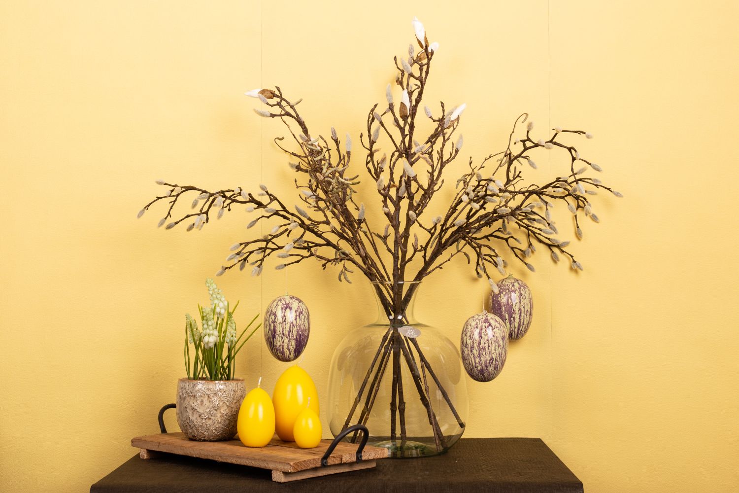 Design tip: Choose the colour of the Easter eggs so that this look is not too colourful. Distribute twigs evenly in the vase.
