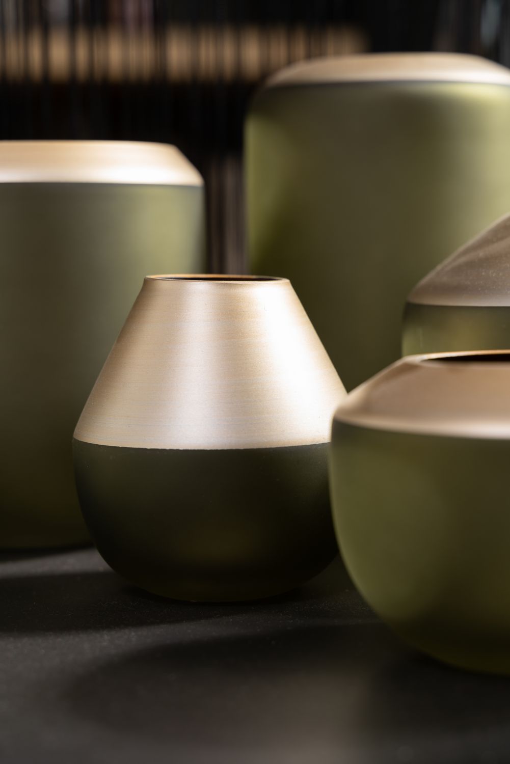 Elegant glass flower vase GORDEN, green-rose, 4.7"/12cm, Ø4.3"/11cm