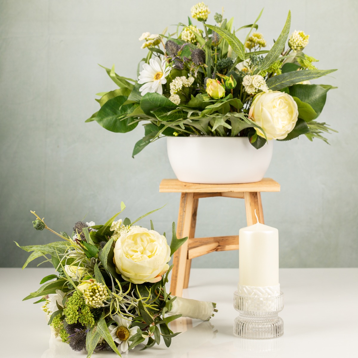 Exclusive wedding bouquet / arrangement white-green - customer request from a cruise ship company