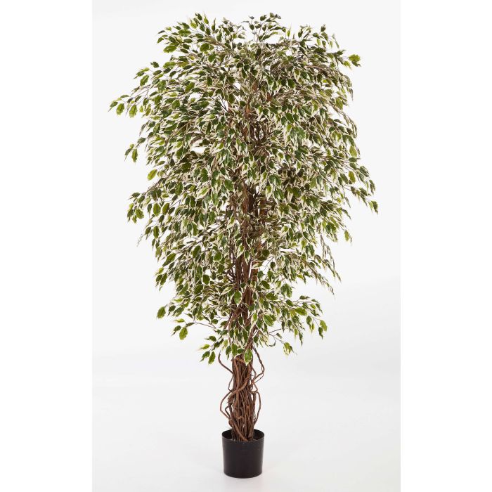 Fake plant Ficus Benjamini DAKU, natural trunks, green-white, 3ft/90cm