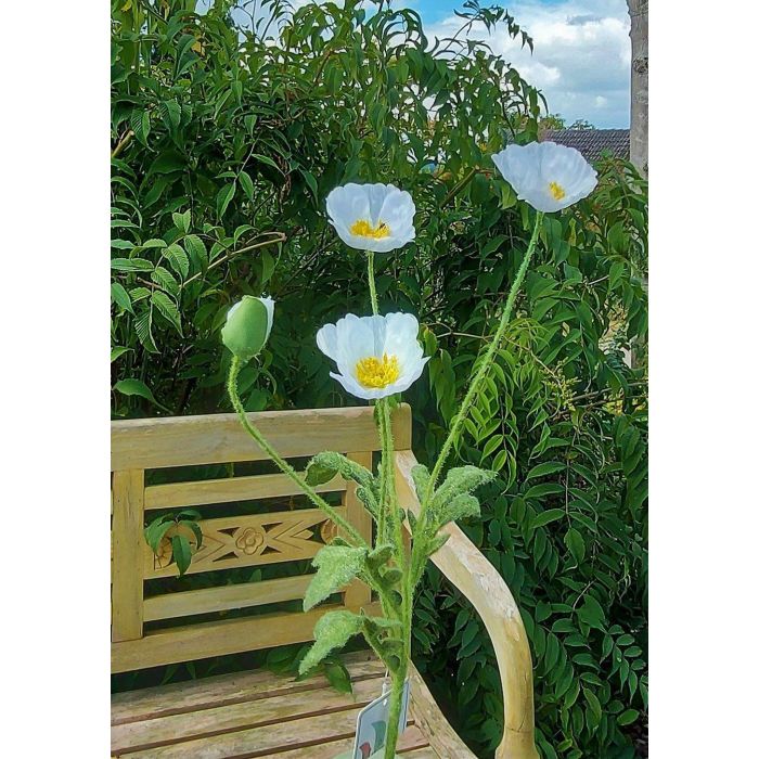 Fake poppy branch OXANDRINE, cream-white, 24"/60cm