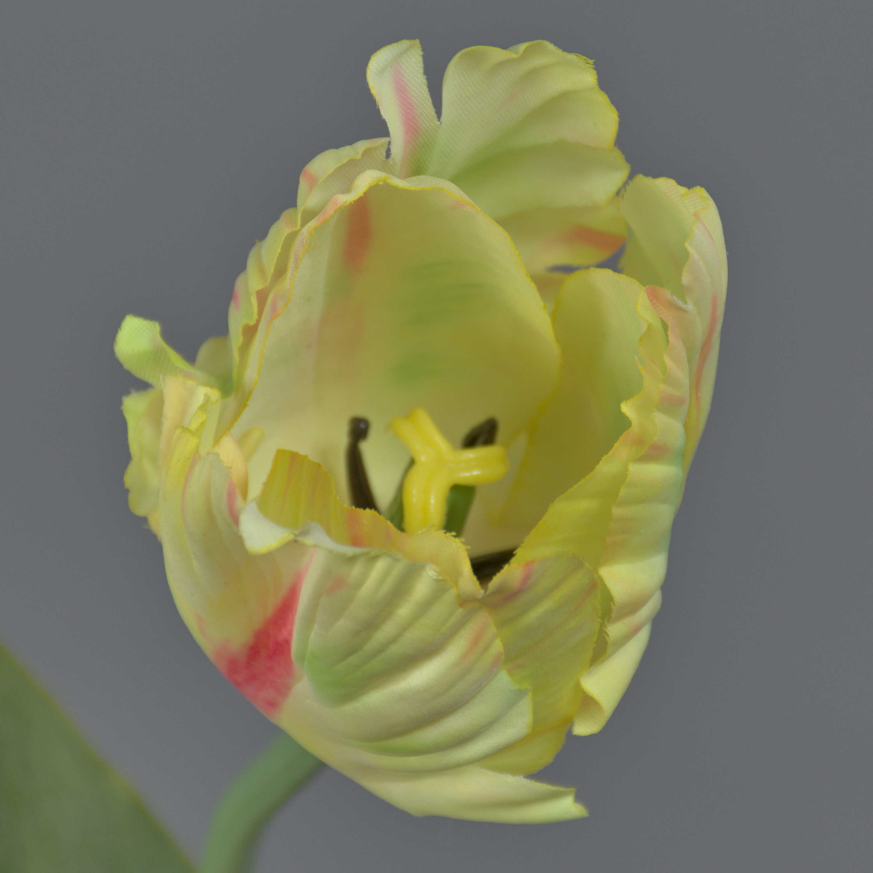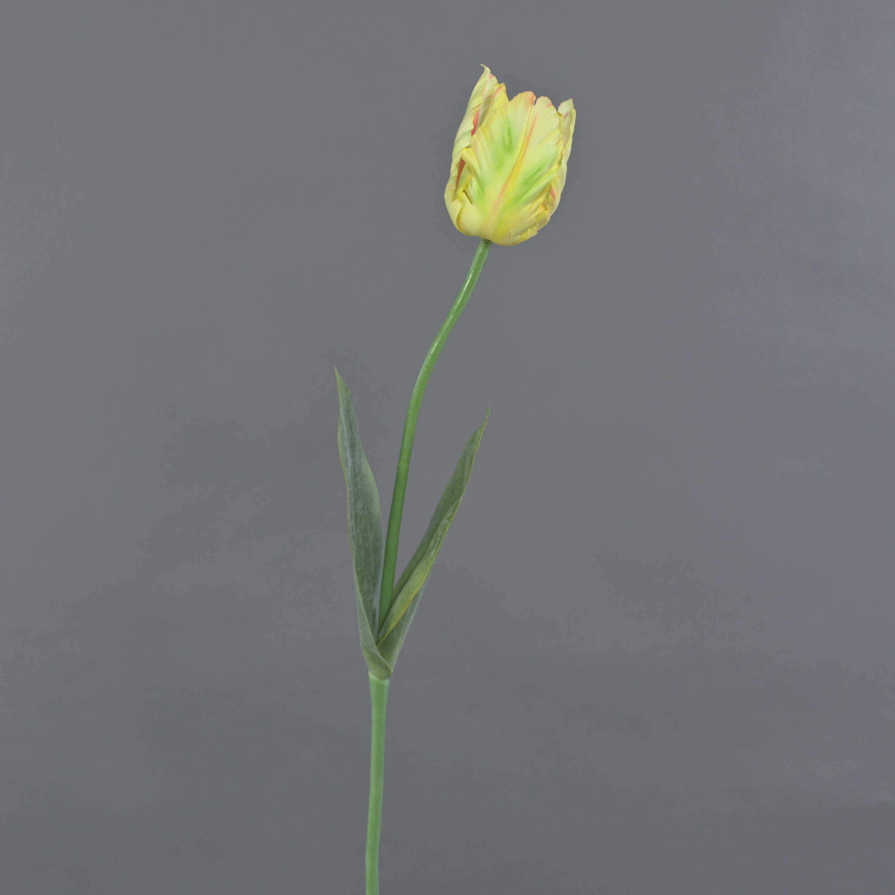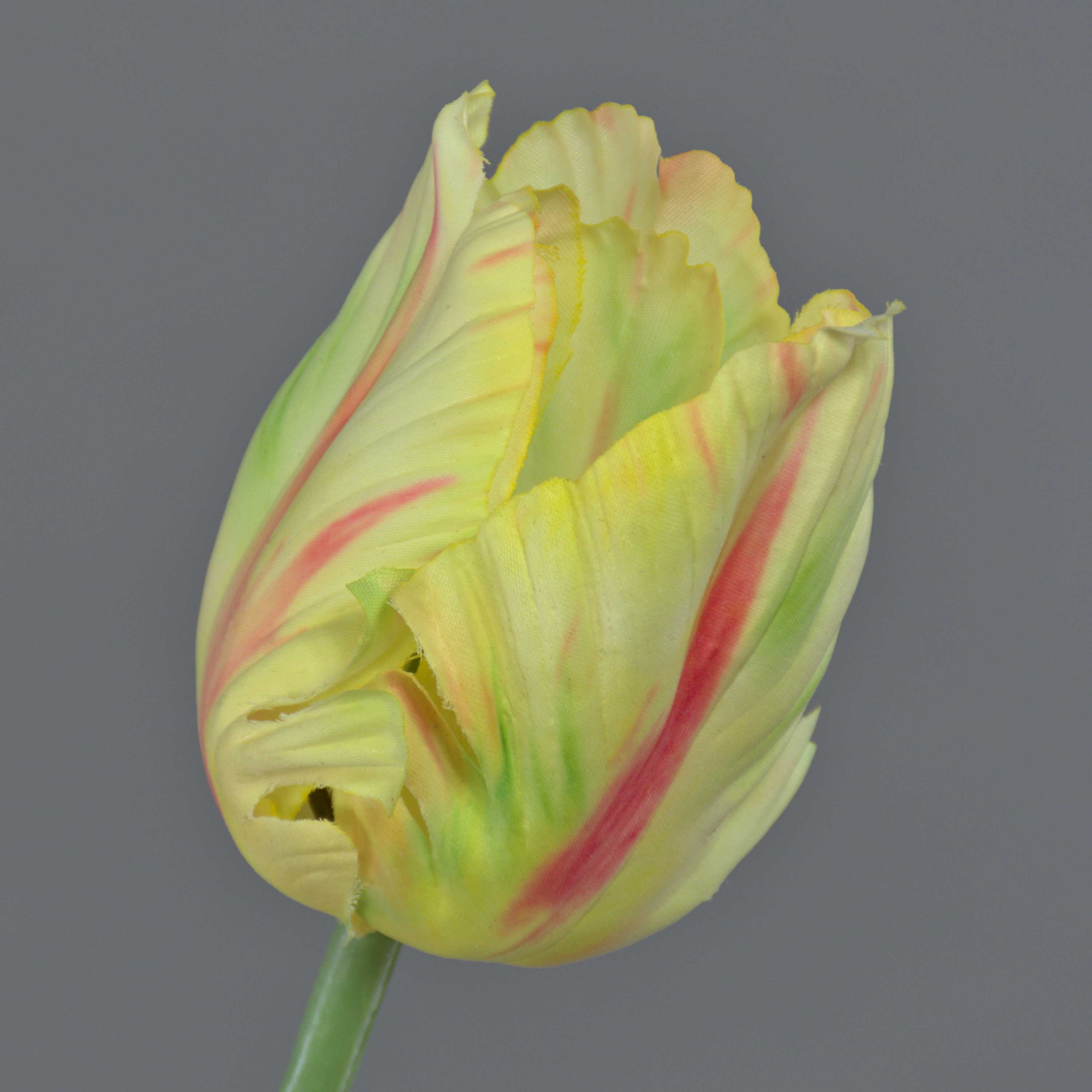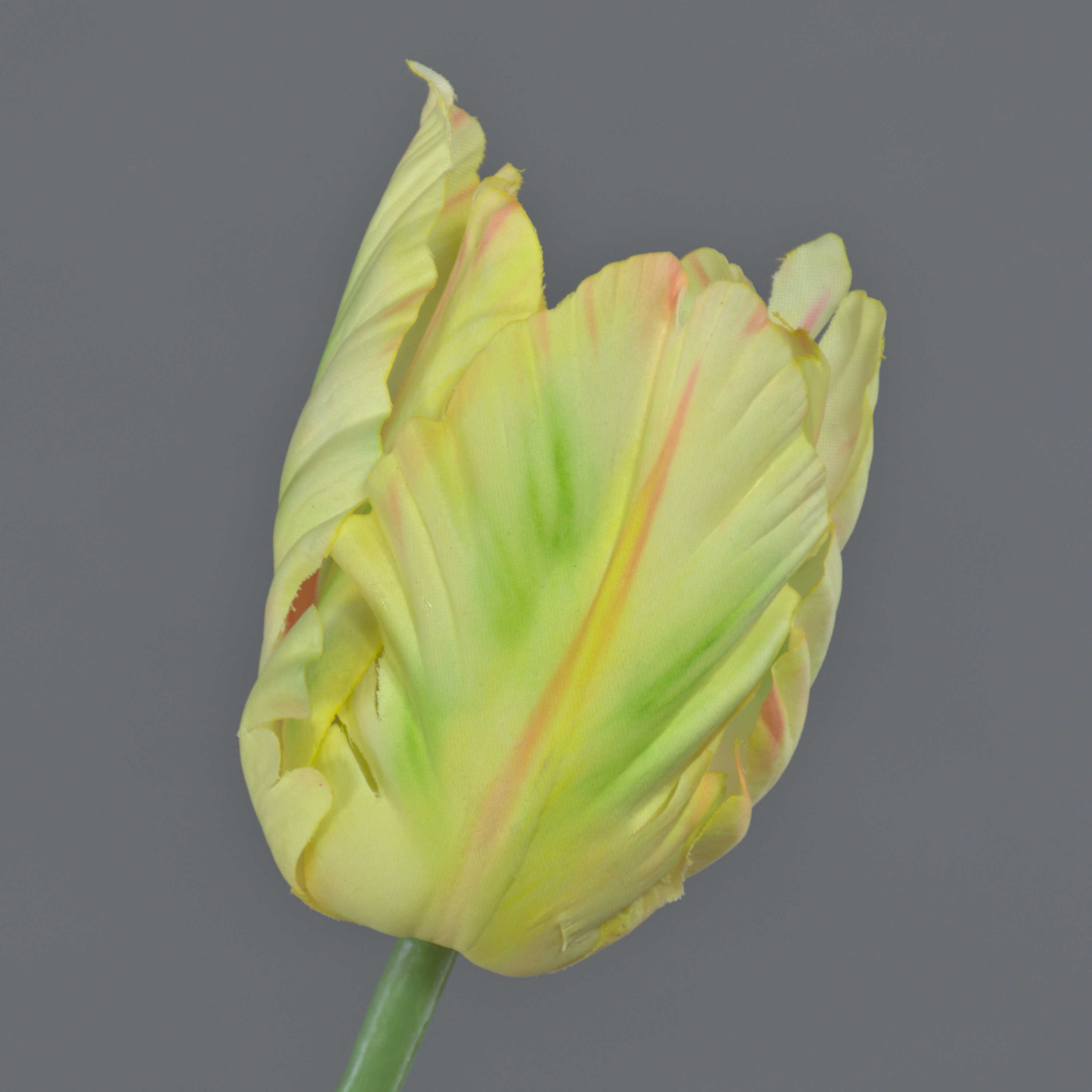 False flower Parrot tulip UAKARI, light yellow-green-pink, 26"/65cm, Ø2.4"/6cm
