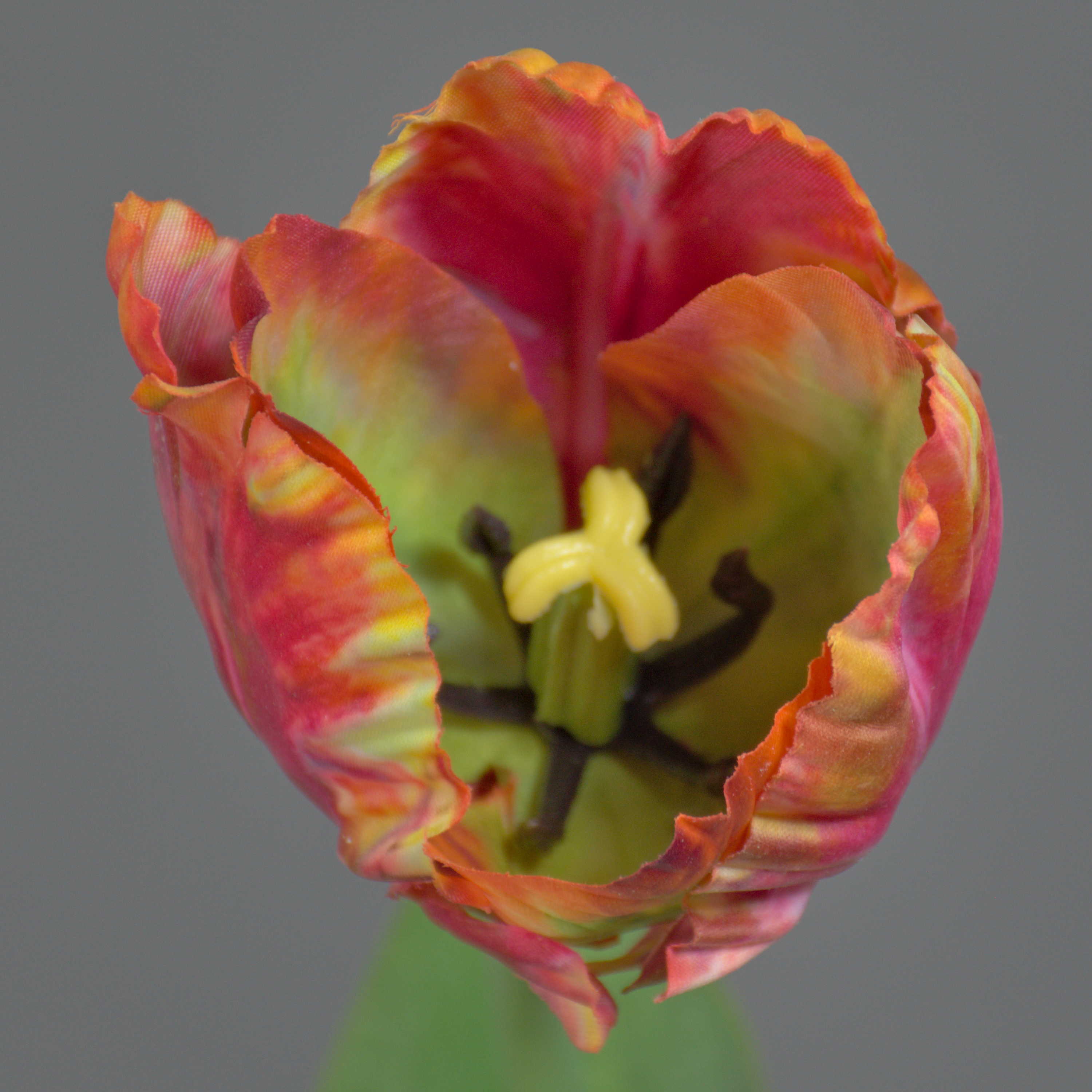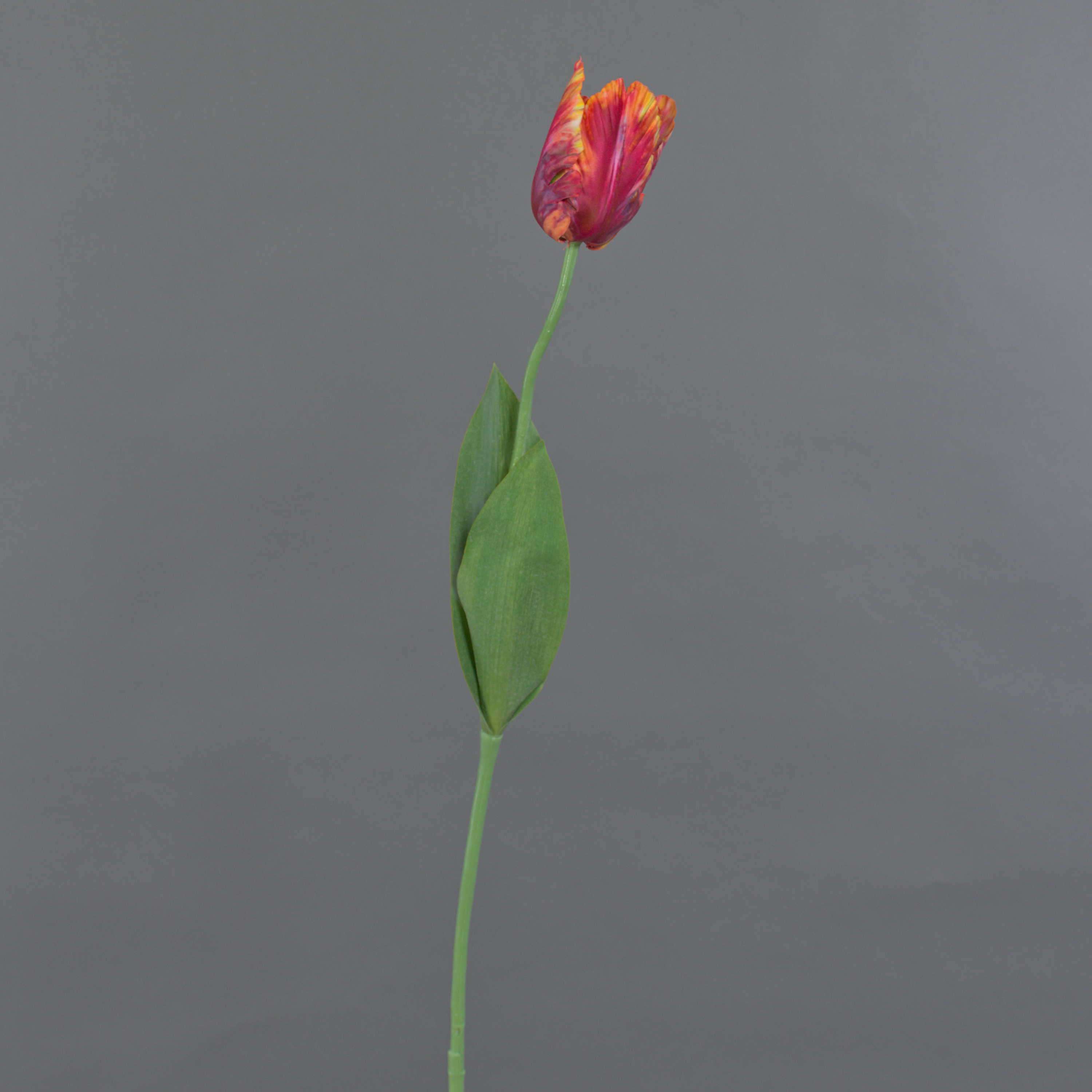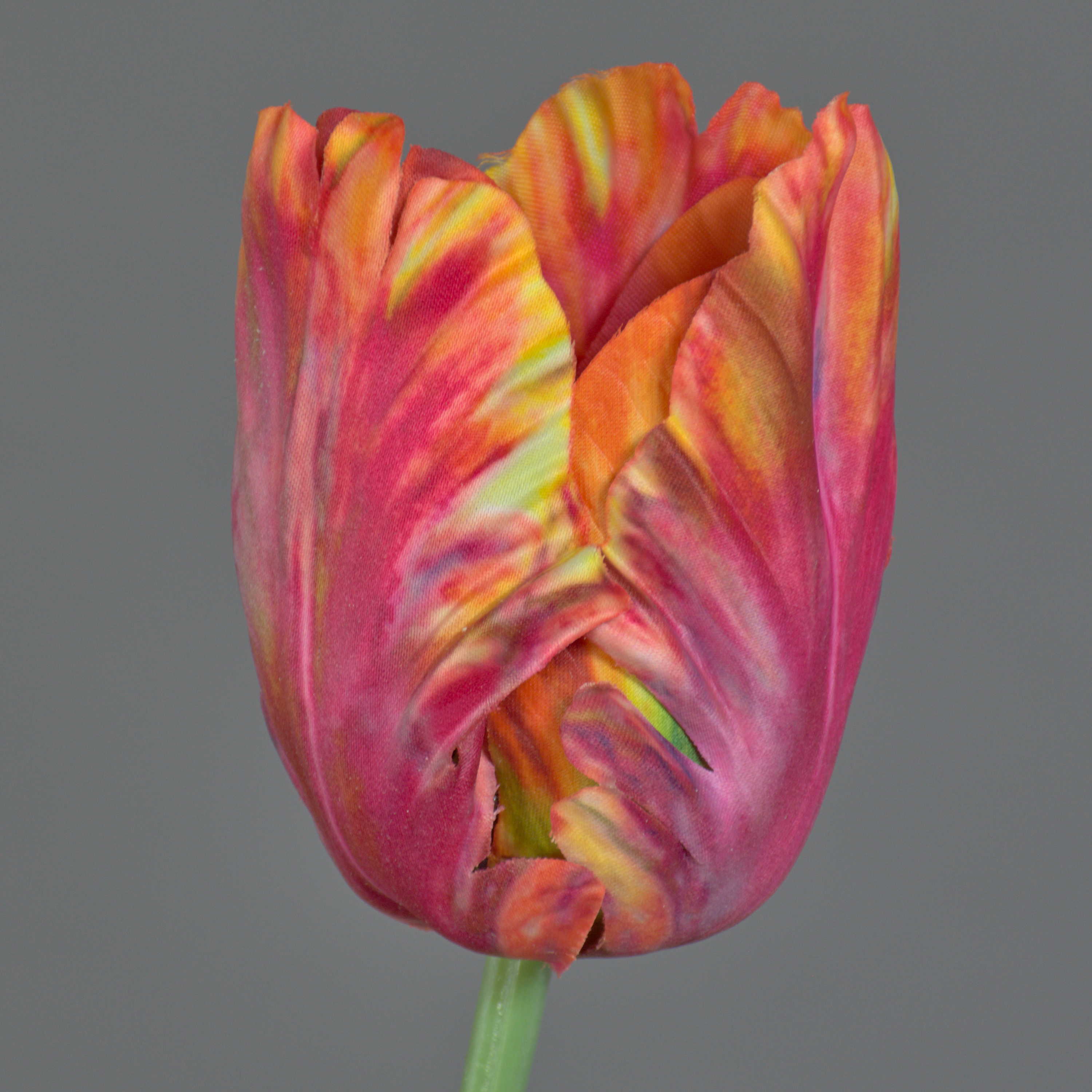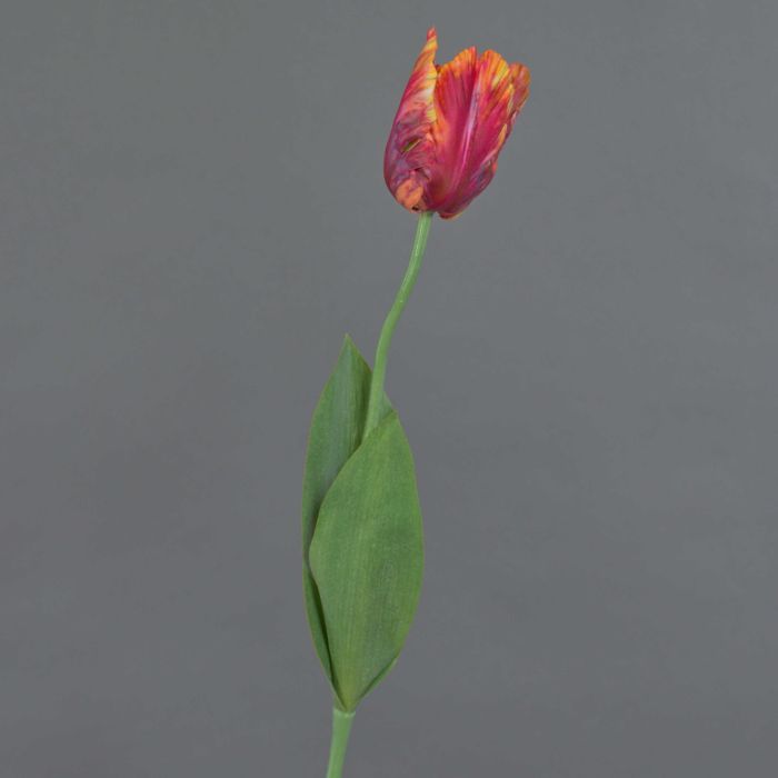 False flower Parrot tulip UAKARI, red-fuchsia-orange-green, 26"/65cm, Ø2.4"/6cm