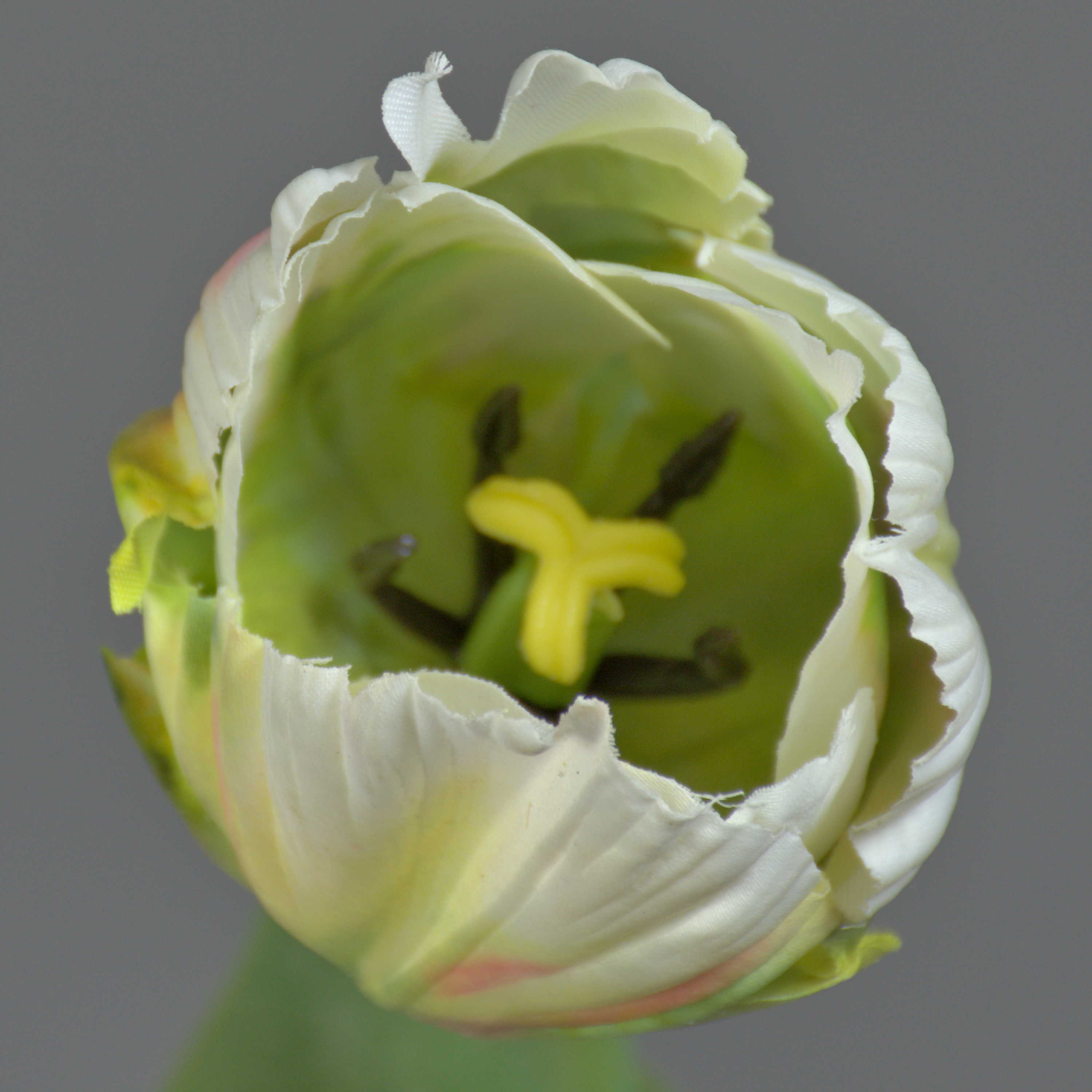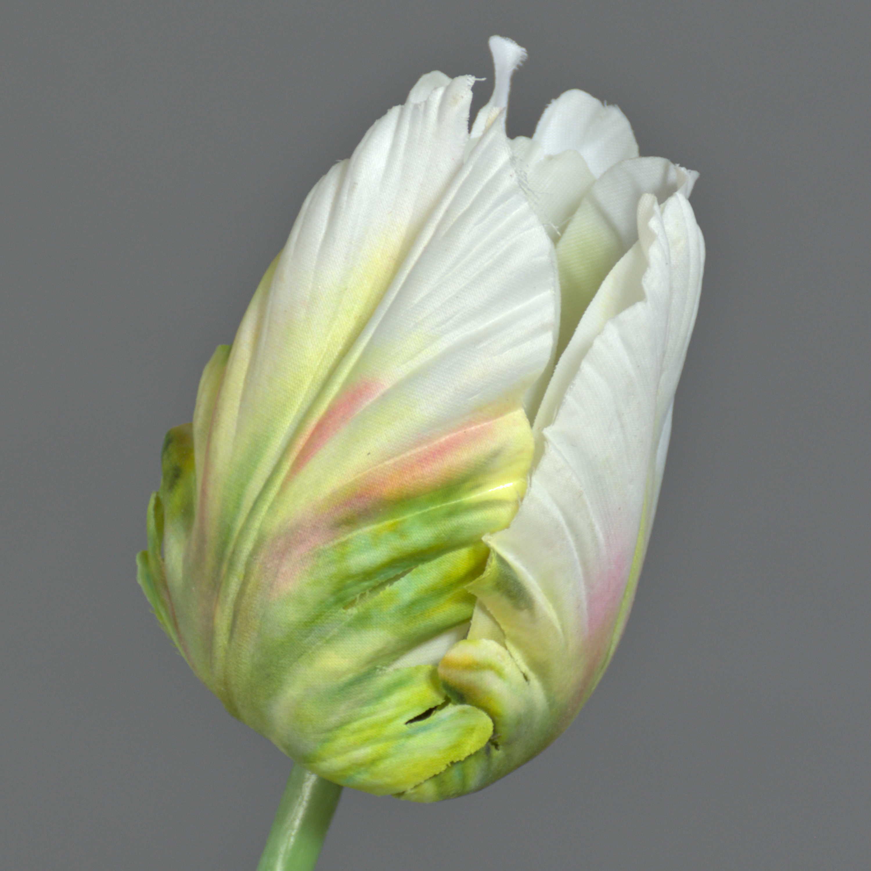 False flower Parrot tulip UAKARI, white-green, 26"/65cm, Ø2.4"/6cm