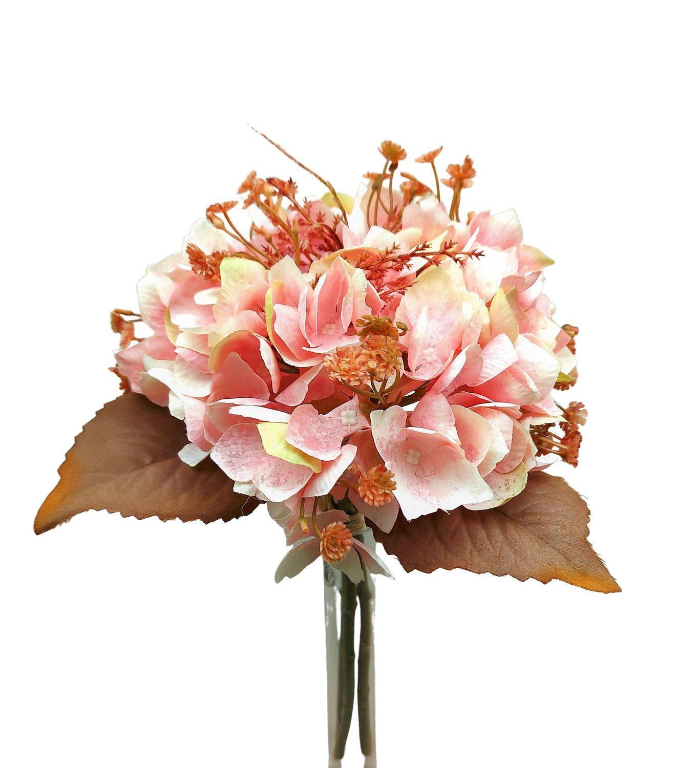 False hydrangea bouquet NAGOLD, gypsophila, astilbe, dry look, pink-yellow-orange, 14"/35cm