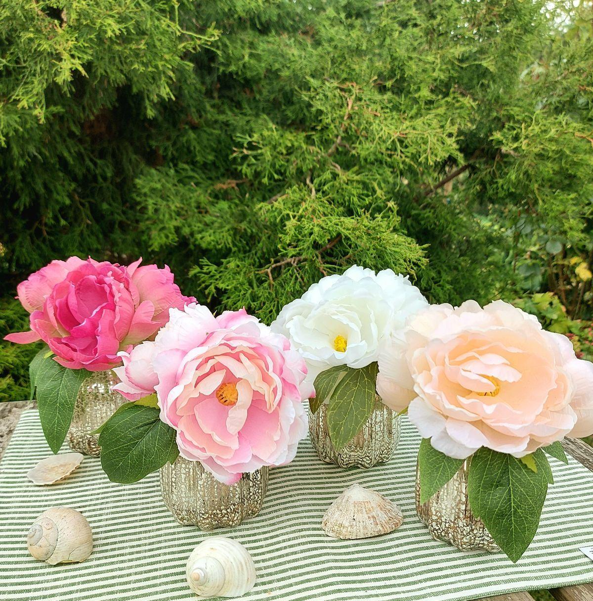 False peony bouquet VEIKO in glass vase, apricot-cream, 6"/15cm
