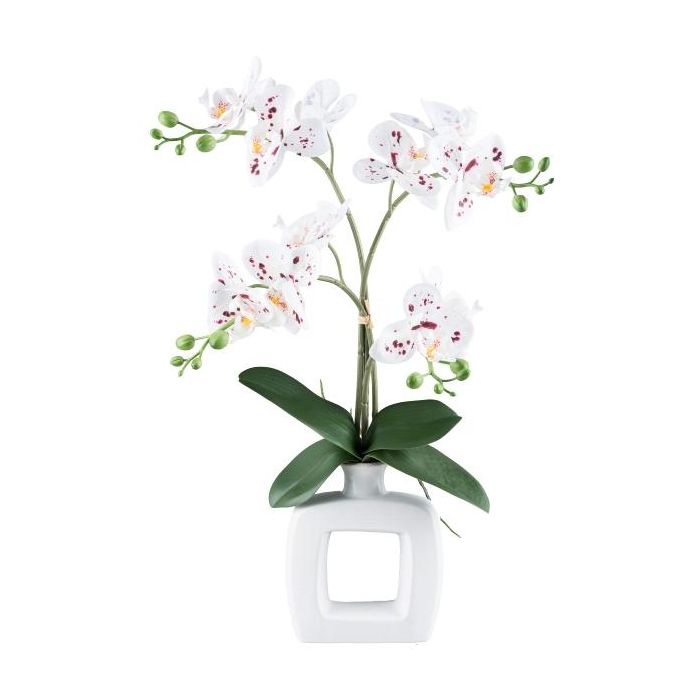 False Phalaenopsis orchid DRUKLON, ceramic vase, roots, white-red, 16"/40cm