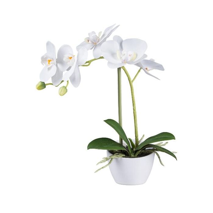 False Phalaenopsis orchid FUNTIF in melamine planter, roots, white, 14"/35cm