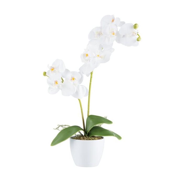 False Phalaenopsis orchid KRUZBER, ceramic pot, roots, white, 22"/55cm