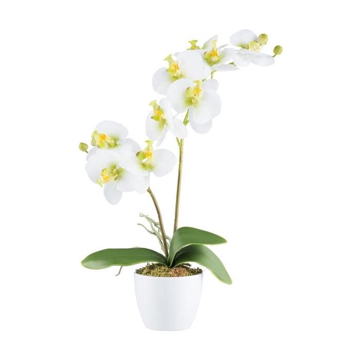 False Phalaenopsis orchid KRUZBER, ceramic pot, roots, white-green, 22"/55cm
