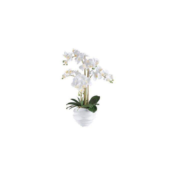 False Phalaenopsis orchid STONFER, white decorative pot, roots, white, 28"/70cm