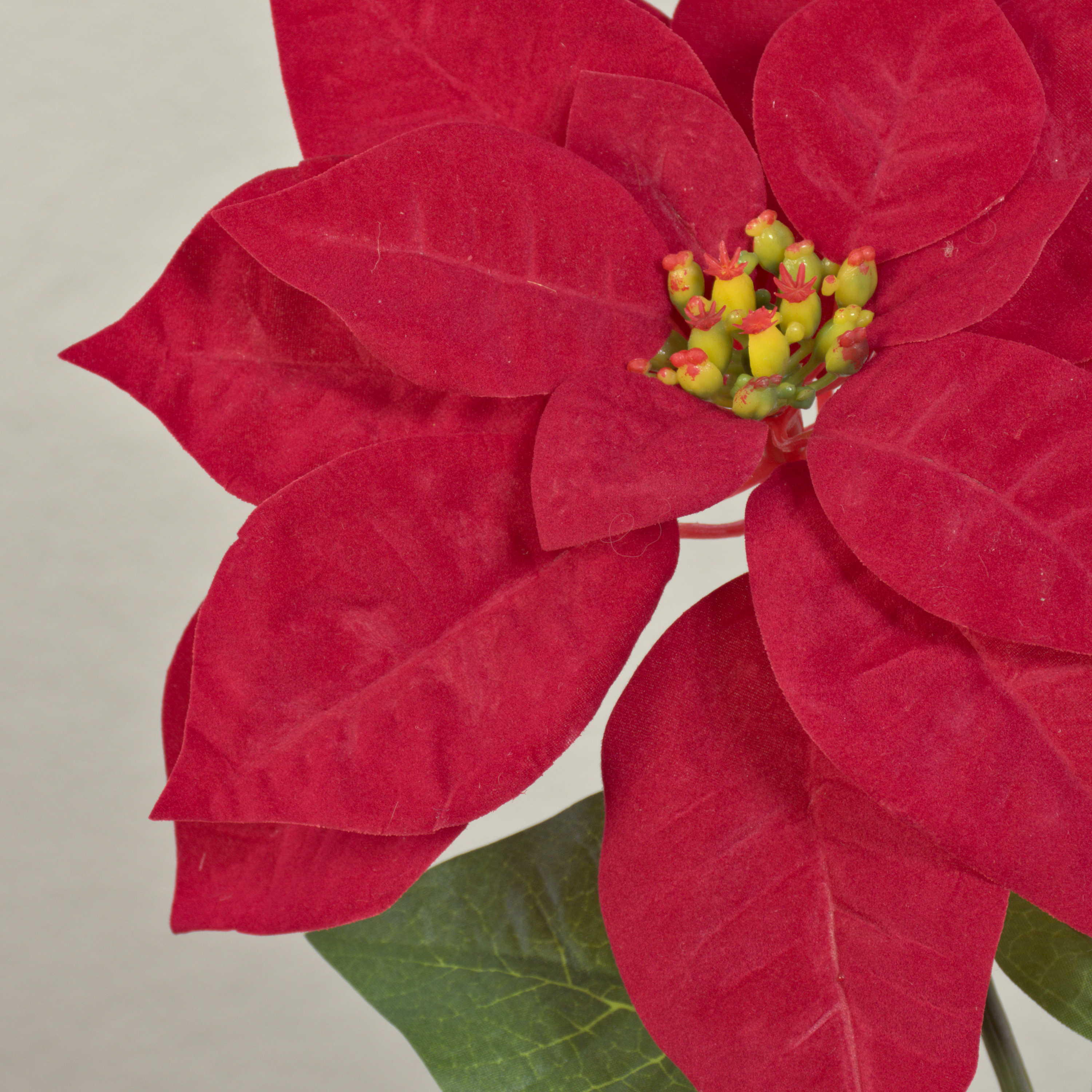 The fake poinsettia LIBASSE will create a striking eye-catcher in combination with a narrow ceramic vase in your home, bistro or office, for example.