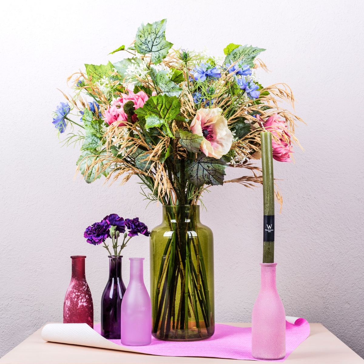Design tip: Tie the different flowers into a bouquet. Here you proceed in a spiral from the inside to the outside. For all those who have little talent or experience in making bouquets. You can also put the individual components into the vase. It is best to proceed from the outside to the inside