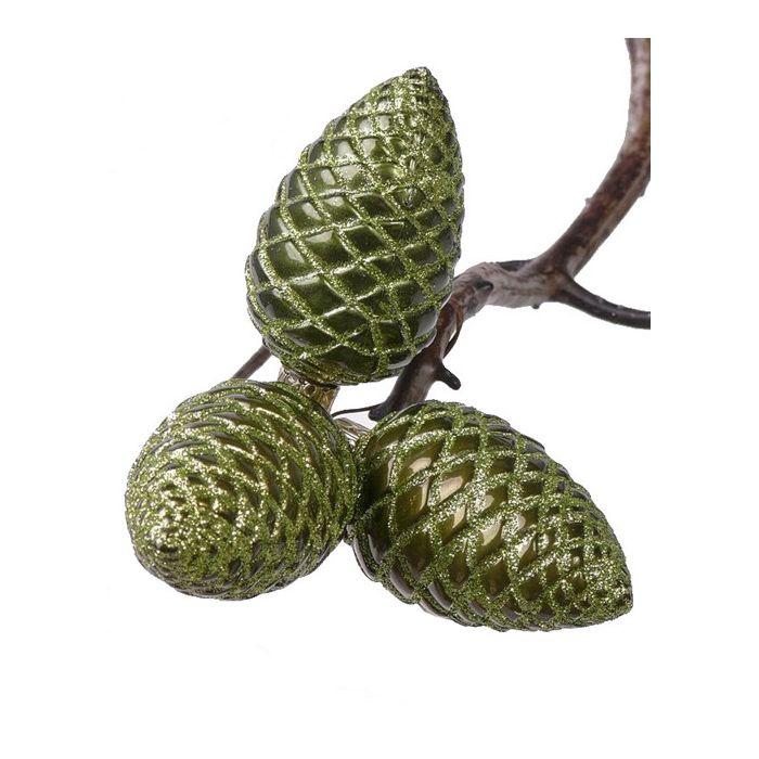 Fir cones for christmas tree decoration ZENTA, 3 pieces, green, 4.3"/11cm