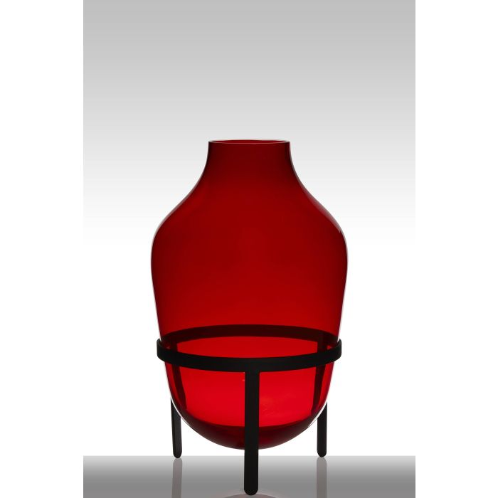 Floor vase of glass CAMILO on pedestal, conical/round, red, 20"/50cm, Ø11"/29cm