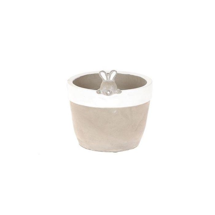 Flower pot BONCHI with bunny head, ceramic, Easter decoration, grey-white, 4.5"/11,5cm, Ø4.3"/11cm
