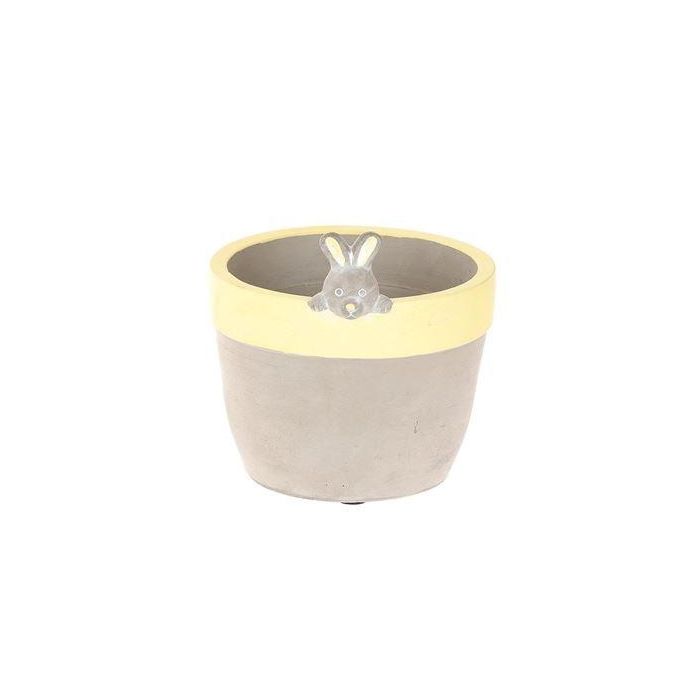 Flower pot BONCHI with bunny head, ceramic, Easter decoration, grey-yellow, 4.5"/11,5cm, Ø4.3"/11cm