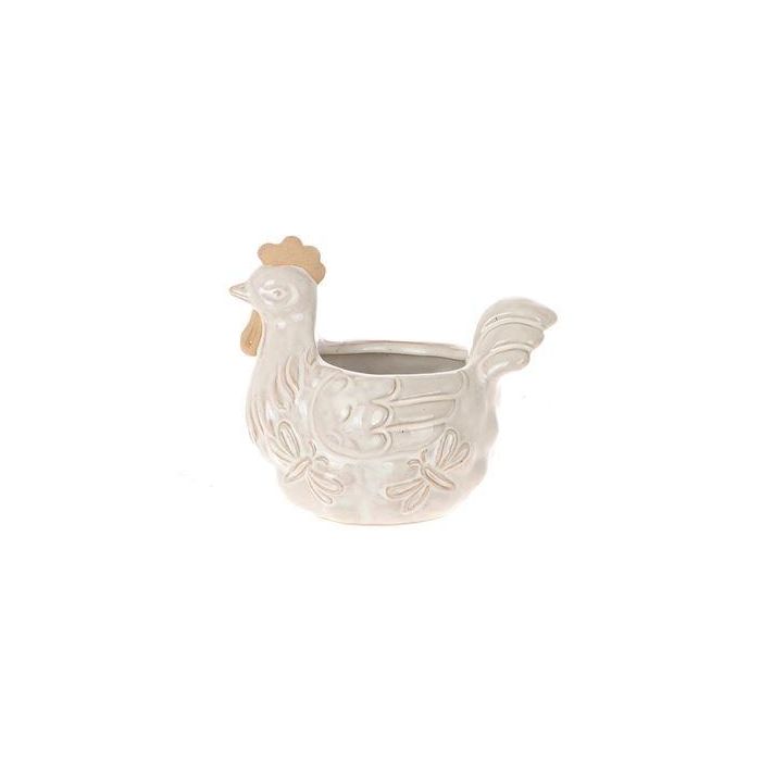 Flower pot Chicken ARKAS made of ceramic, dragonfly motif, grey-white, 6"x4.2"x5.2"/15,6x10,6x13,2cm