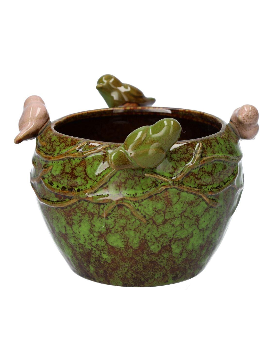 Flower pot SARINO made of ceramic, with 3D birds, green-brown-beige, 4.1"/10,5cm, Ø5.5"/14cm
