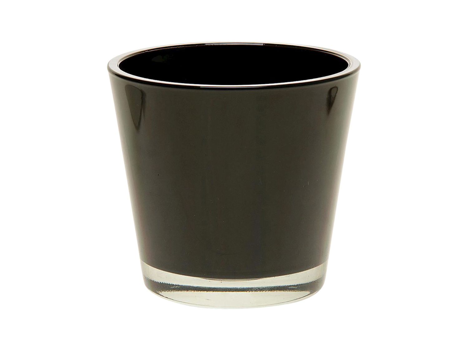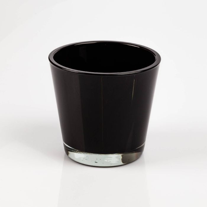 Massive flower pot or tea light holder RANA of glass measuring 3.94" x 5.12" x 5.51"/10 x 13 x 14 cm by INNA Glas. In this black-coloured decorative glass will not only feel your XXL tea light comfortable, but also numerous potted plants will create the perfect ambiance for your rooms.