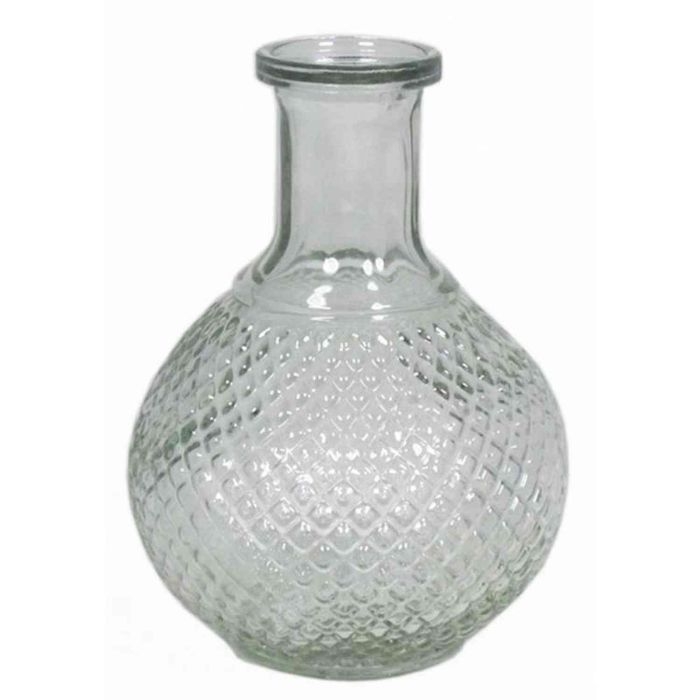Flower vase DONKA, fine diamond pattern, ball/round, clear, 6"/15cm, Ø4.3"/11cm