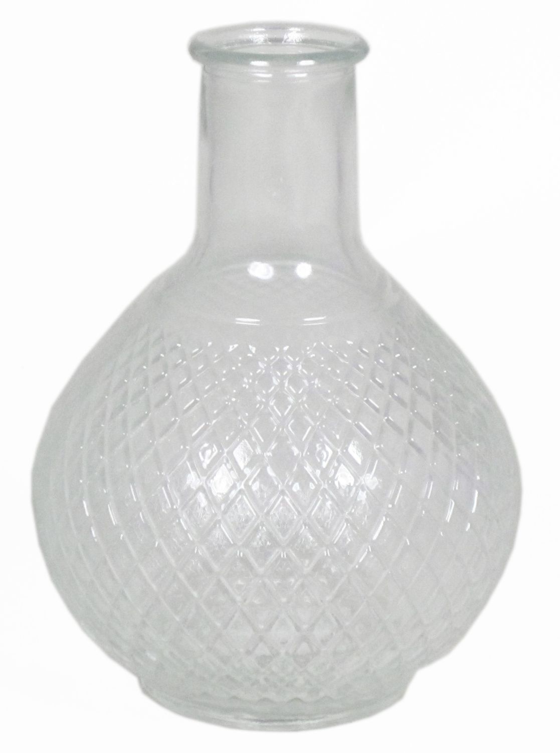 Flower vase DONKA, fine diamond pattern, ball/round, clear, 7"/18,5cm, Ø5.3"/13,5cm
