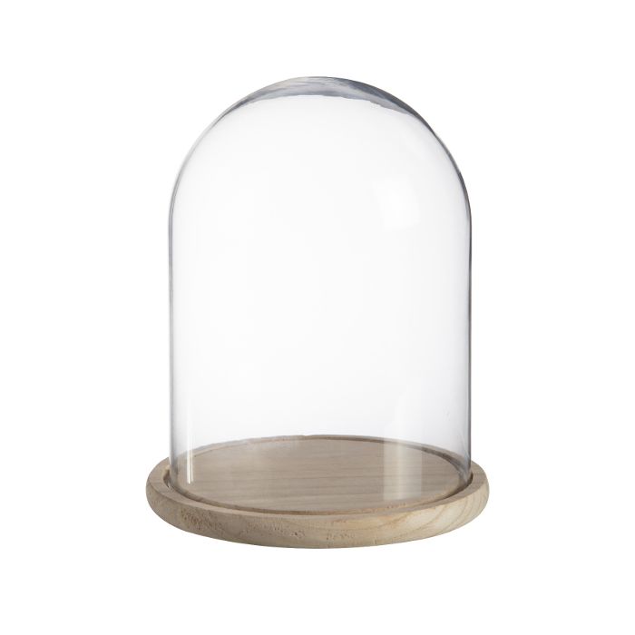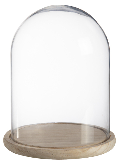 Glass bell SABIKA with wooden base, transparent, 9"/22cm, Ø7"/17cm
