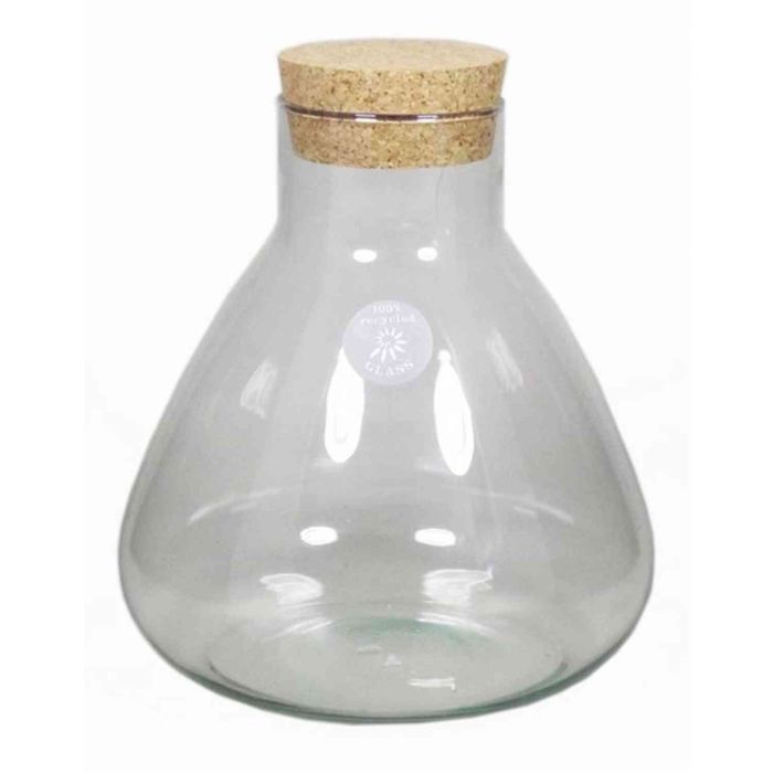 Glass bottle PEPPA, with cork lid, cone/round, clear, 13"/32cm, Ø11"/29cm