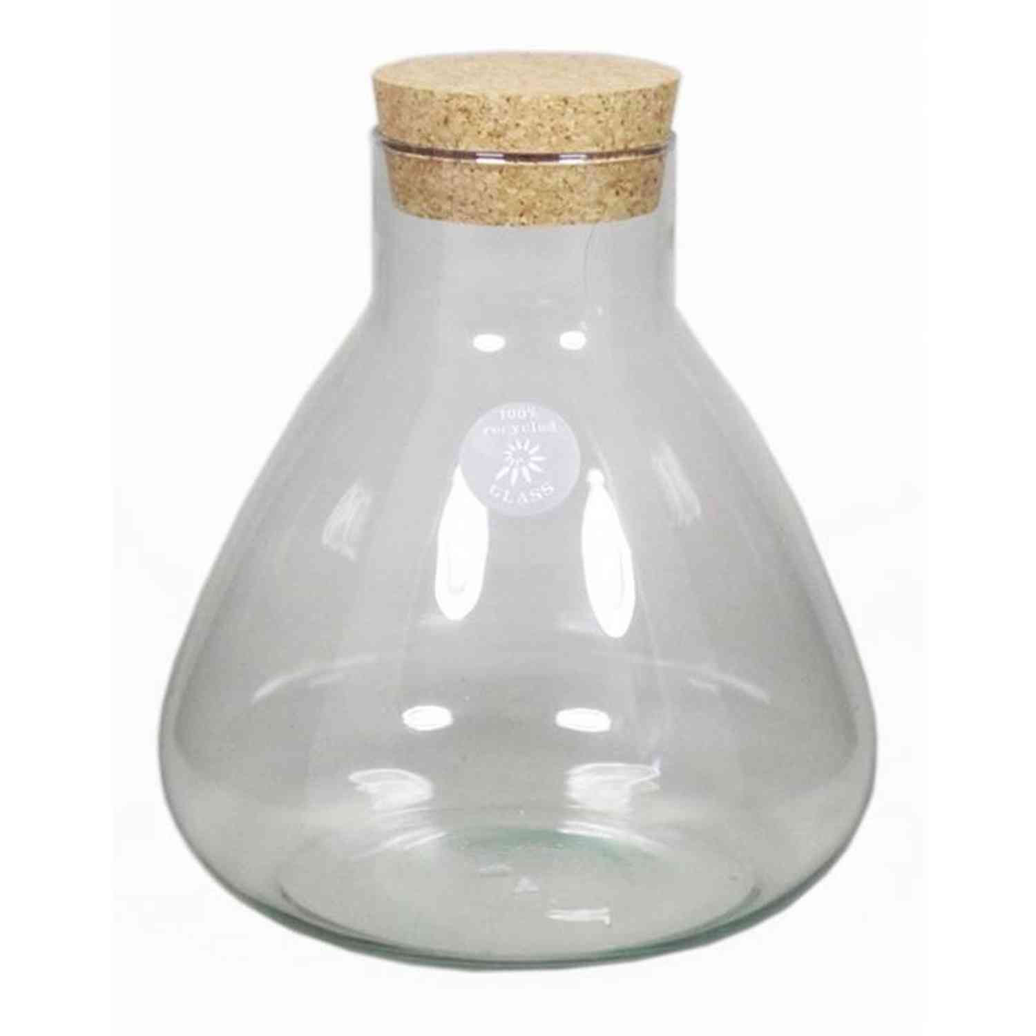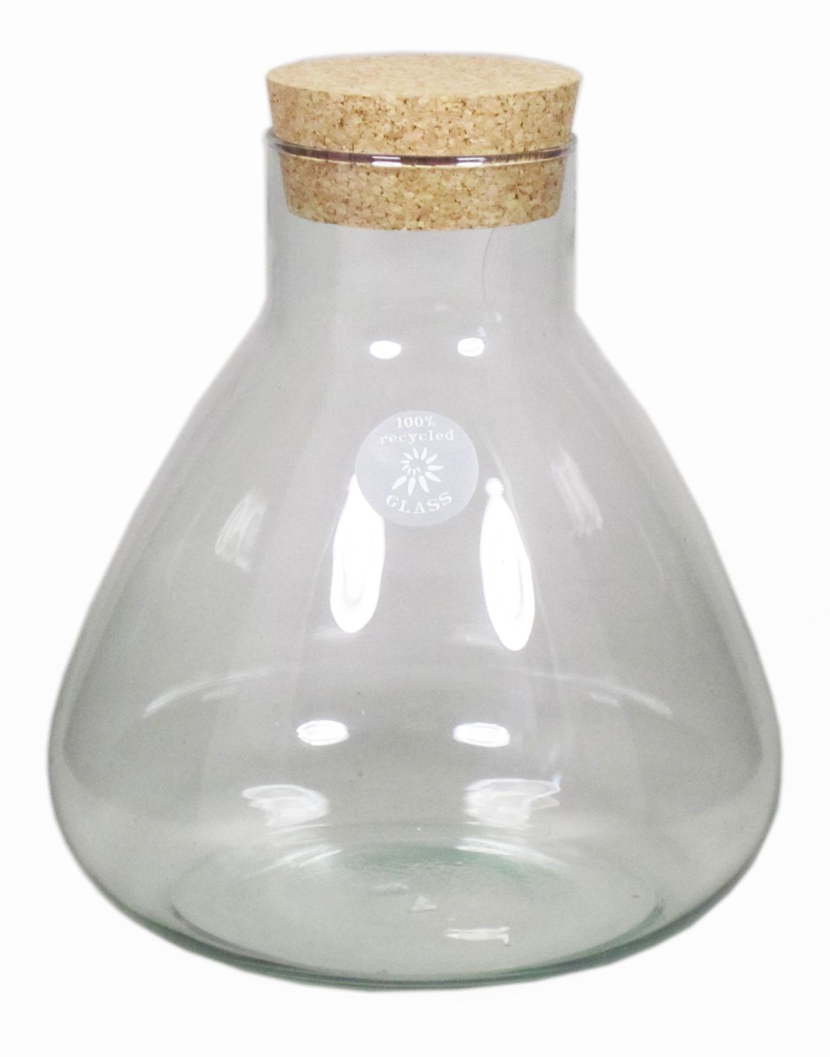 Glass bottle PEPPA, with cork lid, cone/round, clear, 8"/20cm, Ø6"/16,5cm