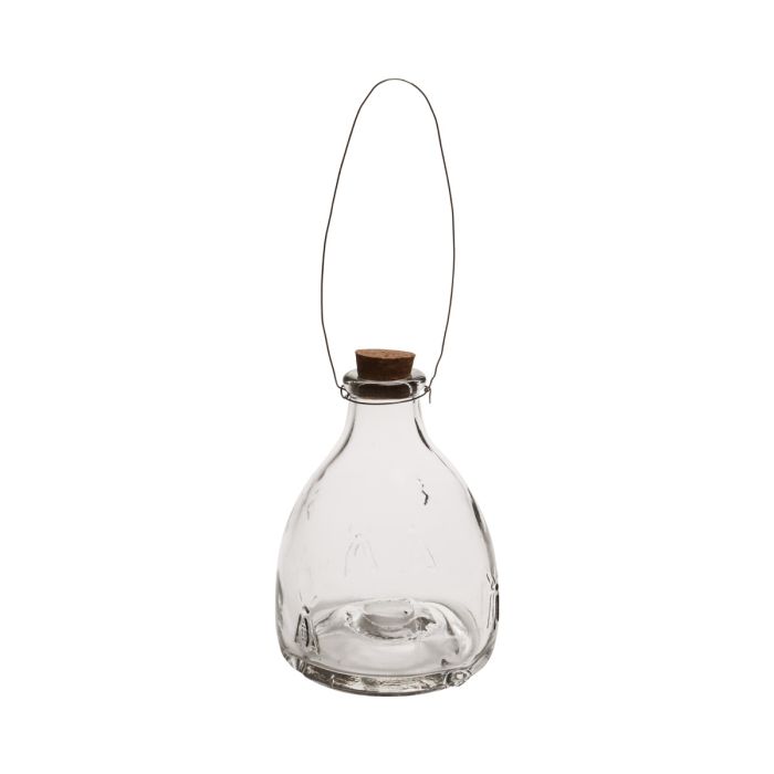 Glass bottle SUMIRE, handle, cork lid, bee motif, transparent, 5"/13 cm, Ø 3.5"/9 cm