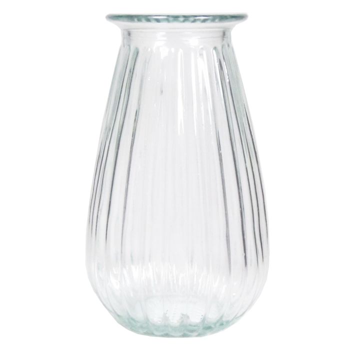 Glass flower vase DORITA grooved, transparent, 8.3"/21 cm, Ø 5"/13 cm