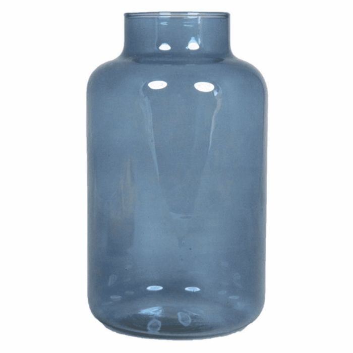 Glass flower vase SIARA, blue-transparent, 10"/25 cm, Ø 6"/15 cm