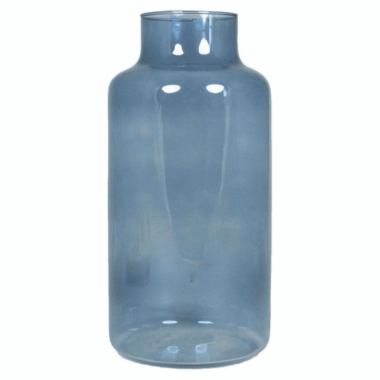 Glass flower vase SIARA, blue-transparent, 12"/30 cm, Ø 6"/15 cm