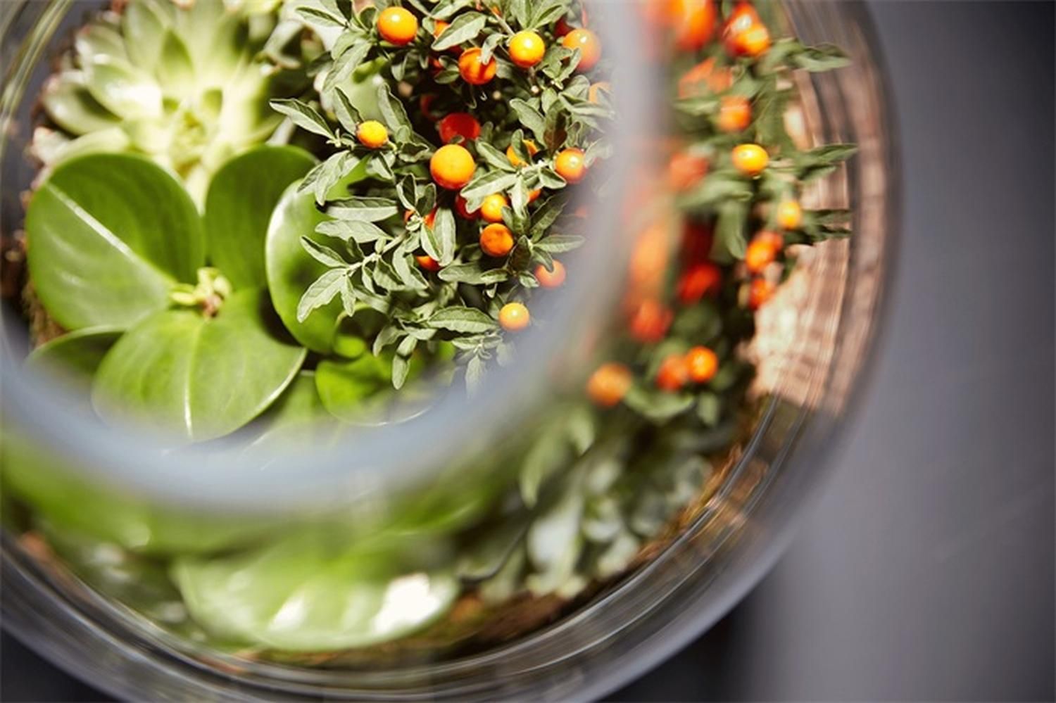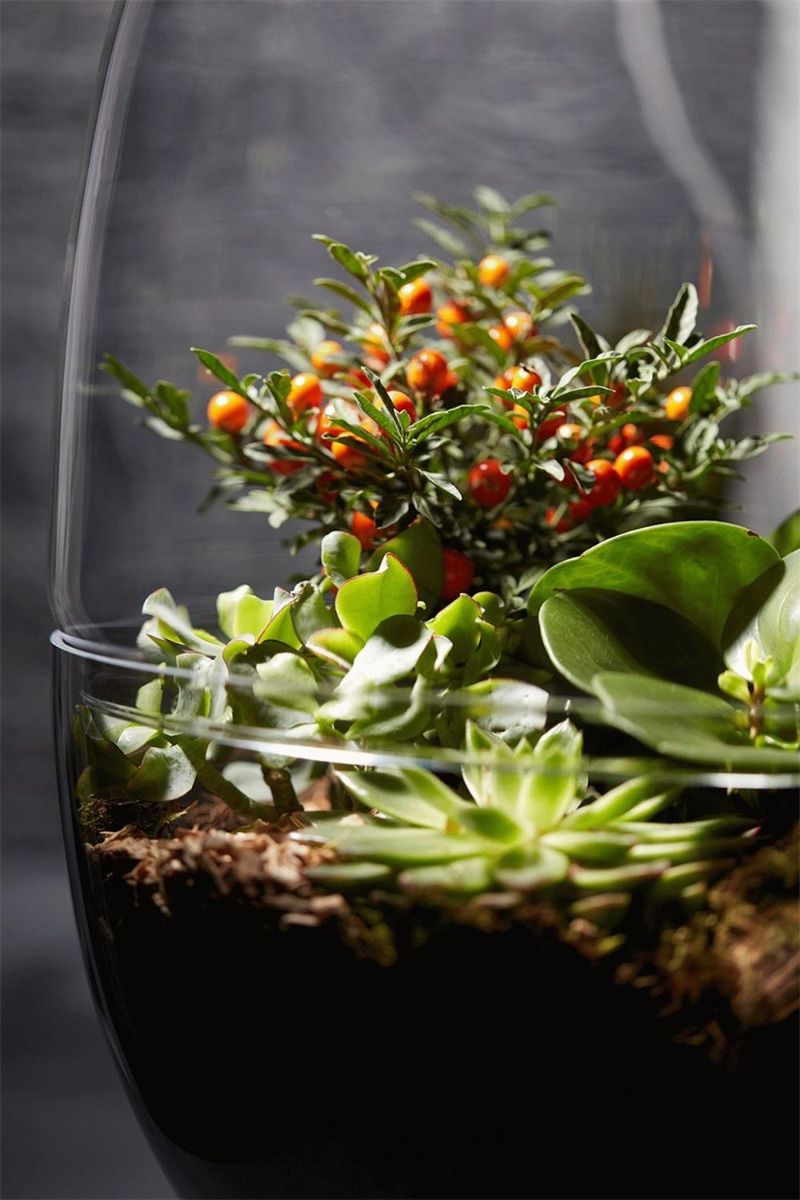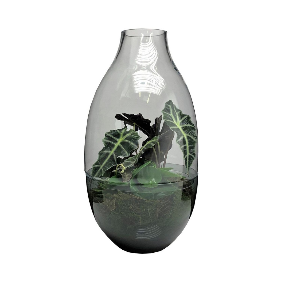 The succulent terrarium PALITA in transparent colour has a height of 56 cm.