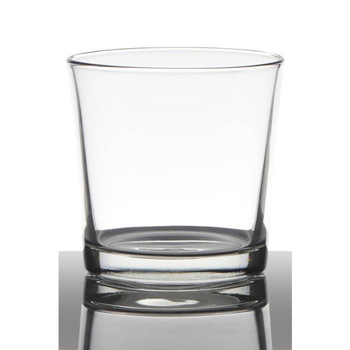 The lantern glass / decorative glass ALENA in clear colour with the dimensions 13 cm; Ø 13 cm by INNA Glas offers space for various candle sizes and can also be wonderfully used as a glass vessel for other decorative accessories.
