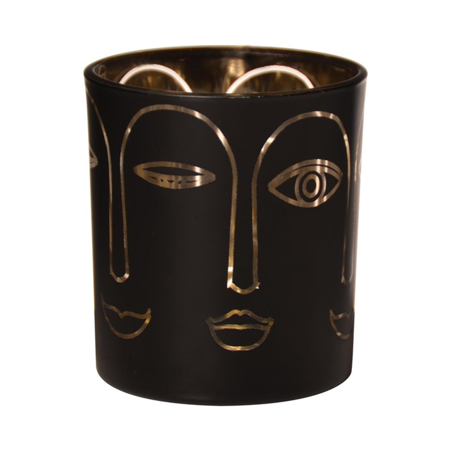 Glass tealight holder LEOLINE with faces, black-gold, 3.1"/8cm, Ø2.8"/7cm