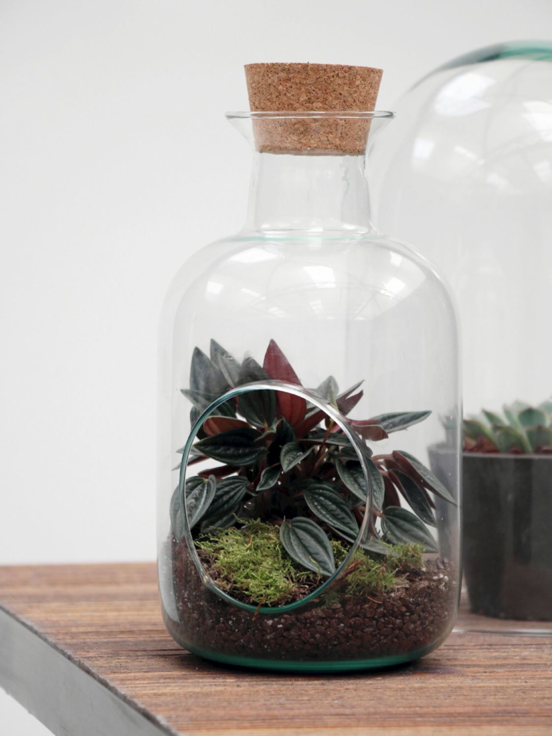 - Item: Terrarium, Shape: Round, Main material: Recycled glass, Second material: Cork, Technique: Mouth blown
