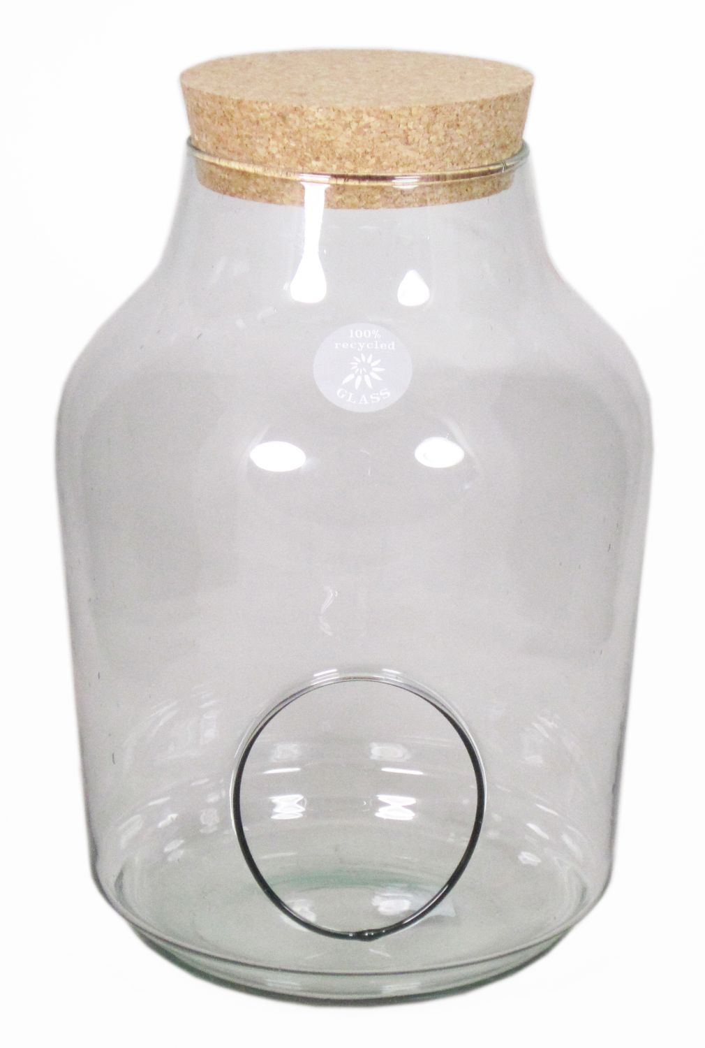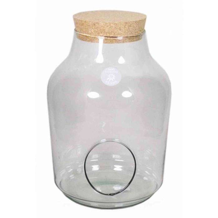 Glass Terrarium JANKO, cork lid, side opening, cylinder/round, clear, 13"/32,5cm, Ø9"/23cm