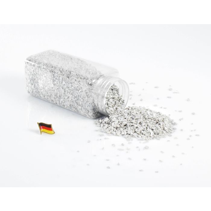 Granular material of seashells OLIVER, glossy light grey, 2-8mm, 605ml bottle, manufactured in Germany