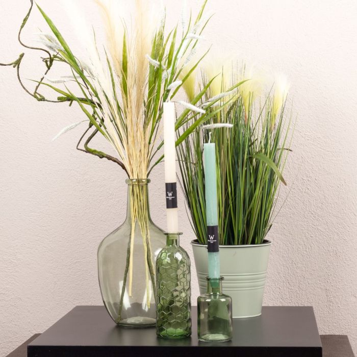 Green, green and green! The colour that is always on trend. What is relaxing and calming for the eyes is also an oasis of relaxation in the living area. Our look features grasses in various shades of green and brown, harmoniously coordinated with each other. The green bottles are not only suitable as vases, but are also perfect as candle holders. With this look, you can almost feel the gentle summer breeze. Shop the Look!