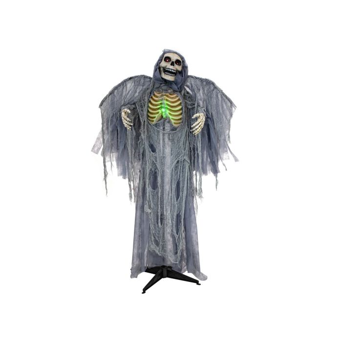Halloween decorative figurine Angel of death skeleton HALDOR with wings, movement and sound function, LEDs, grey, 100x60x175cm