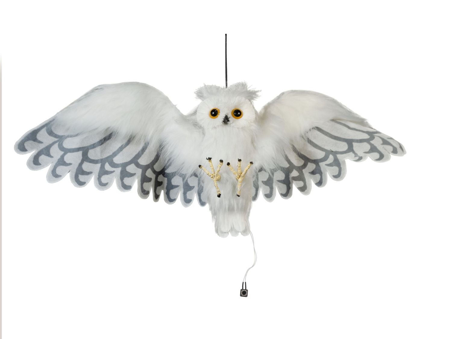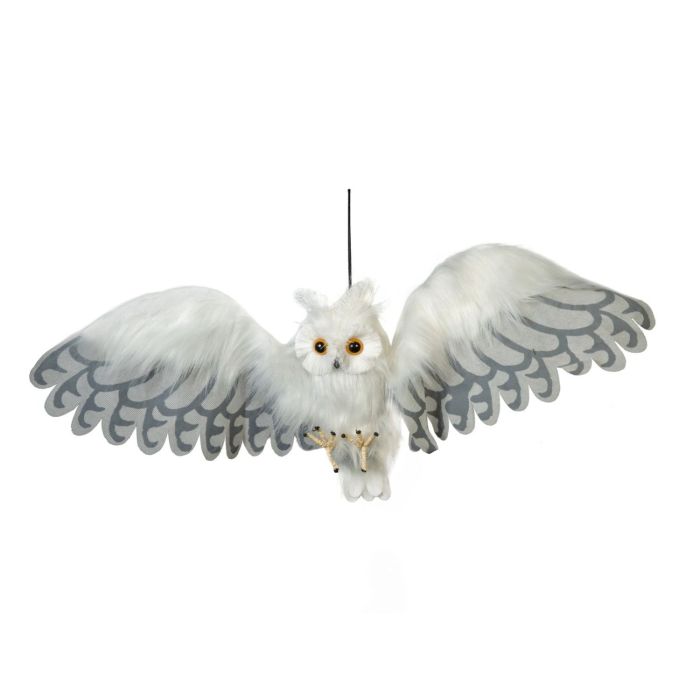 Halloween decorative figurine snowy owl JUNITA, movement and sound function, LEDs, 30x75x10cm
