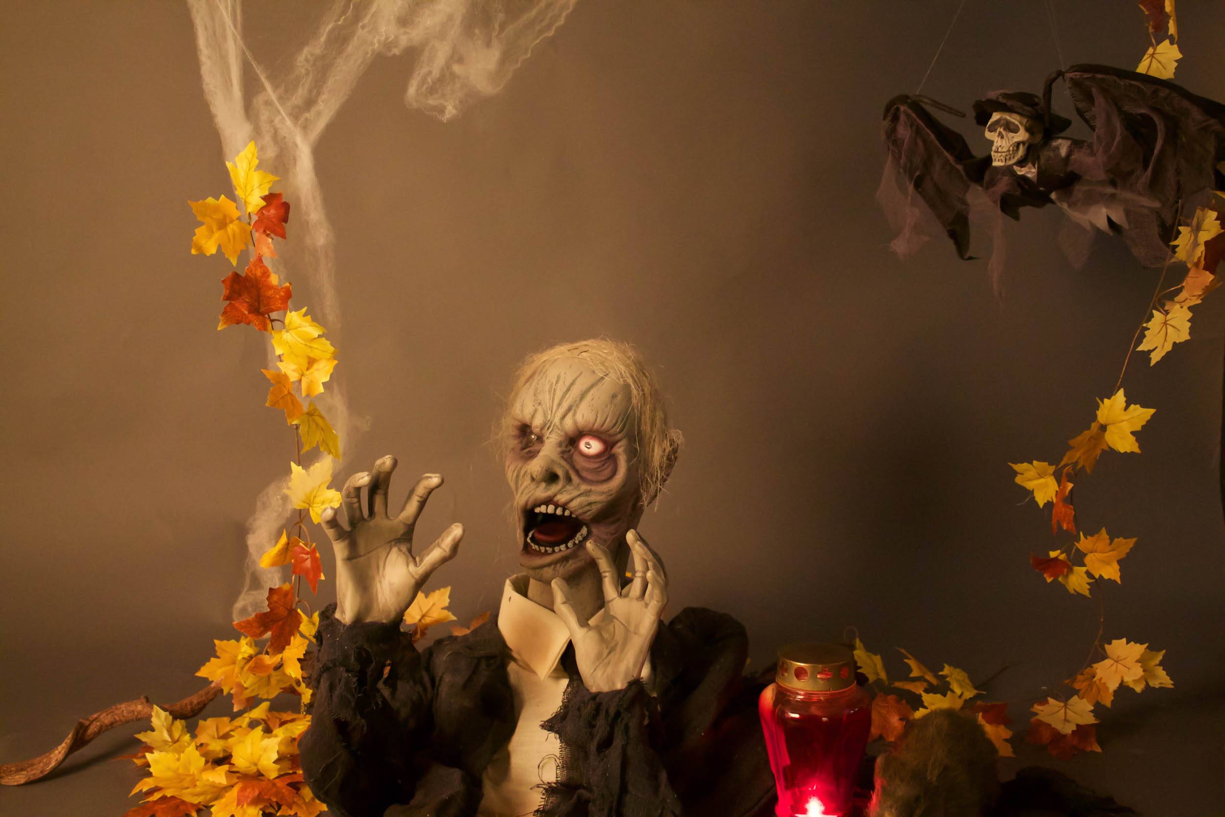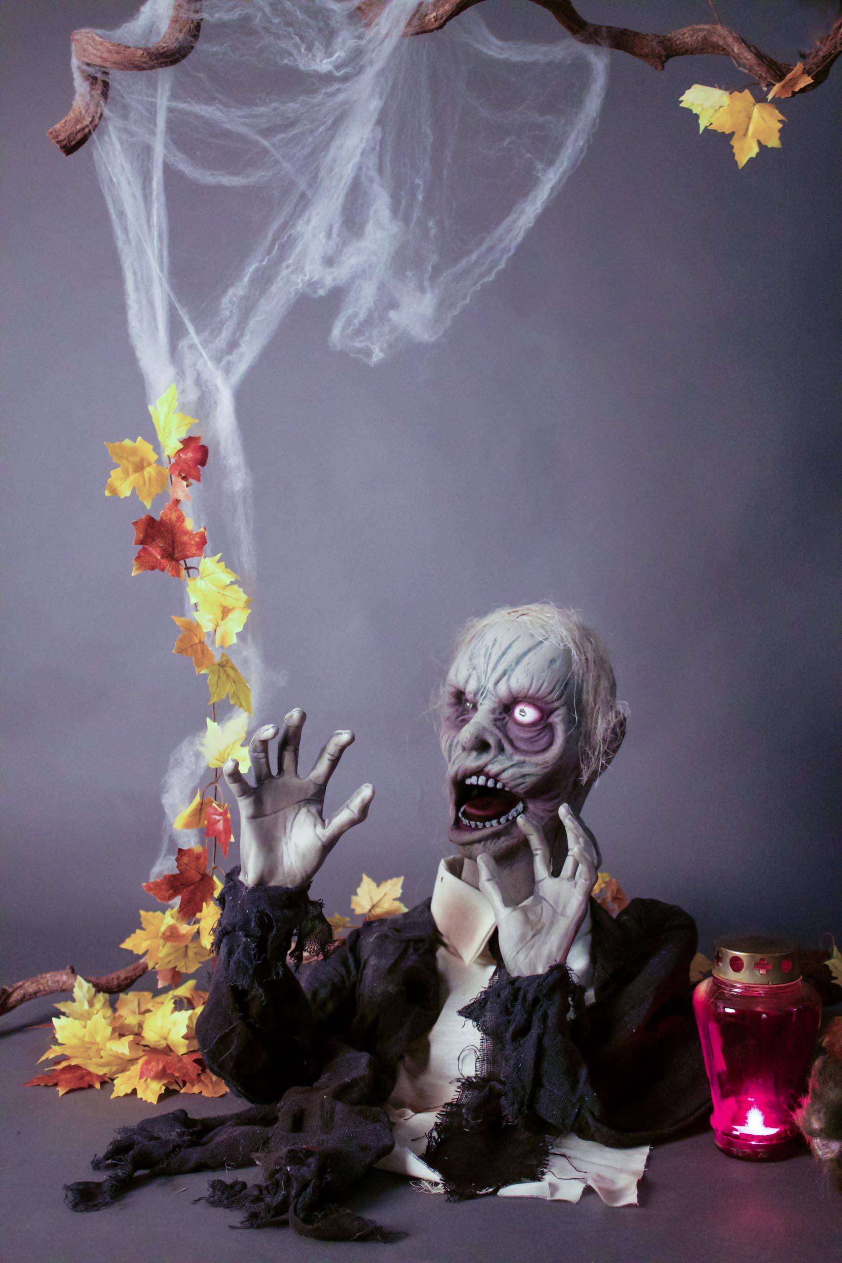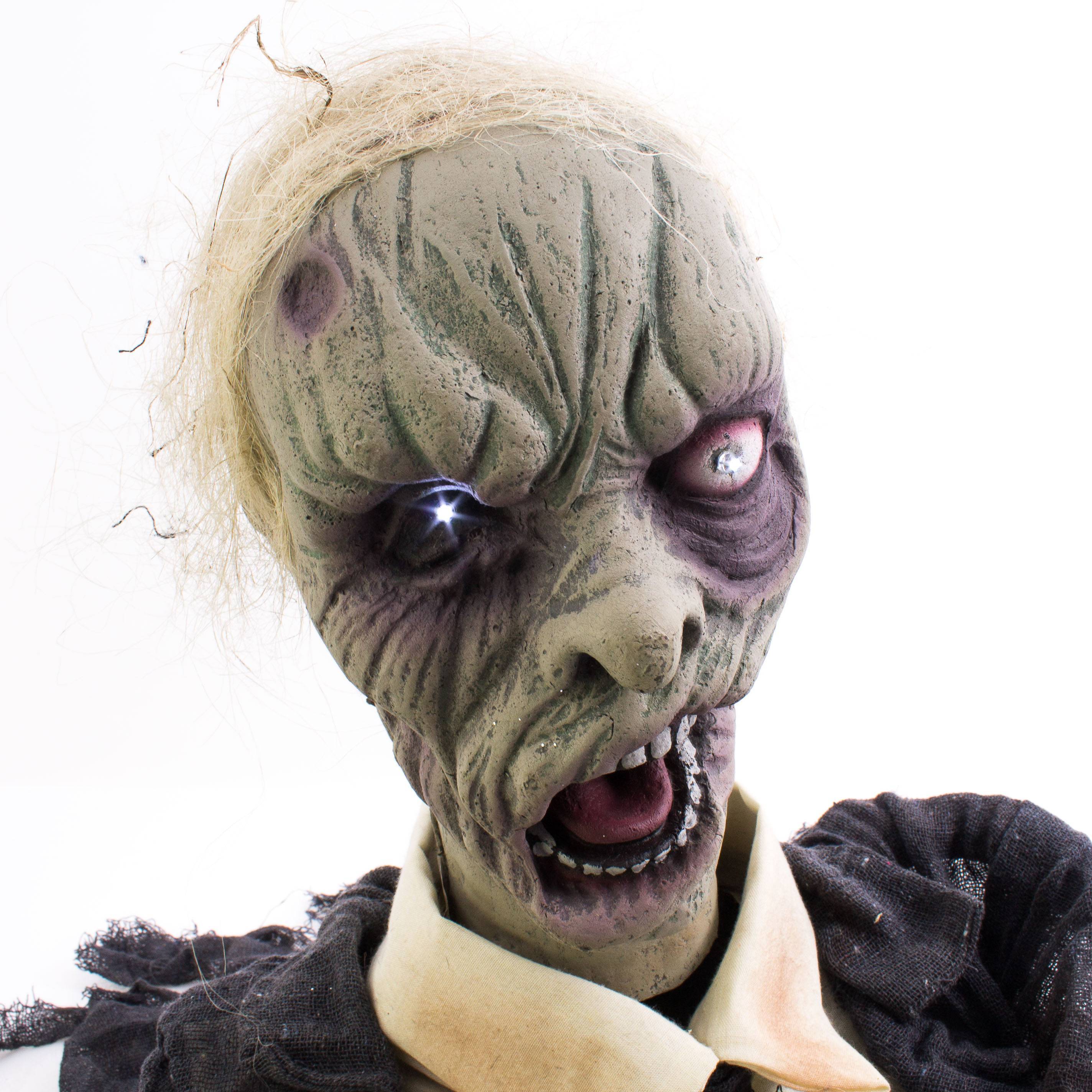 Halloween decorative figurine zombie / undead ROWDY with movement and screaming function, LEDs, 45cm