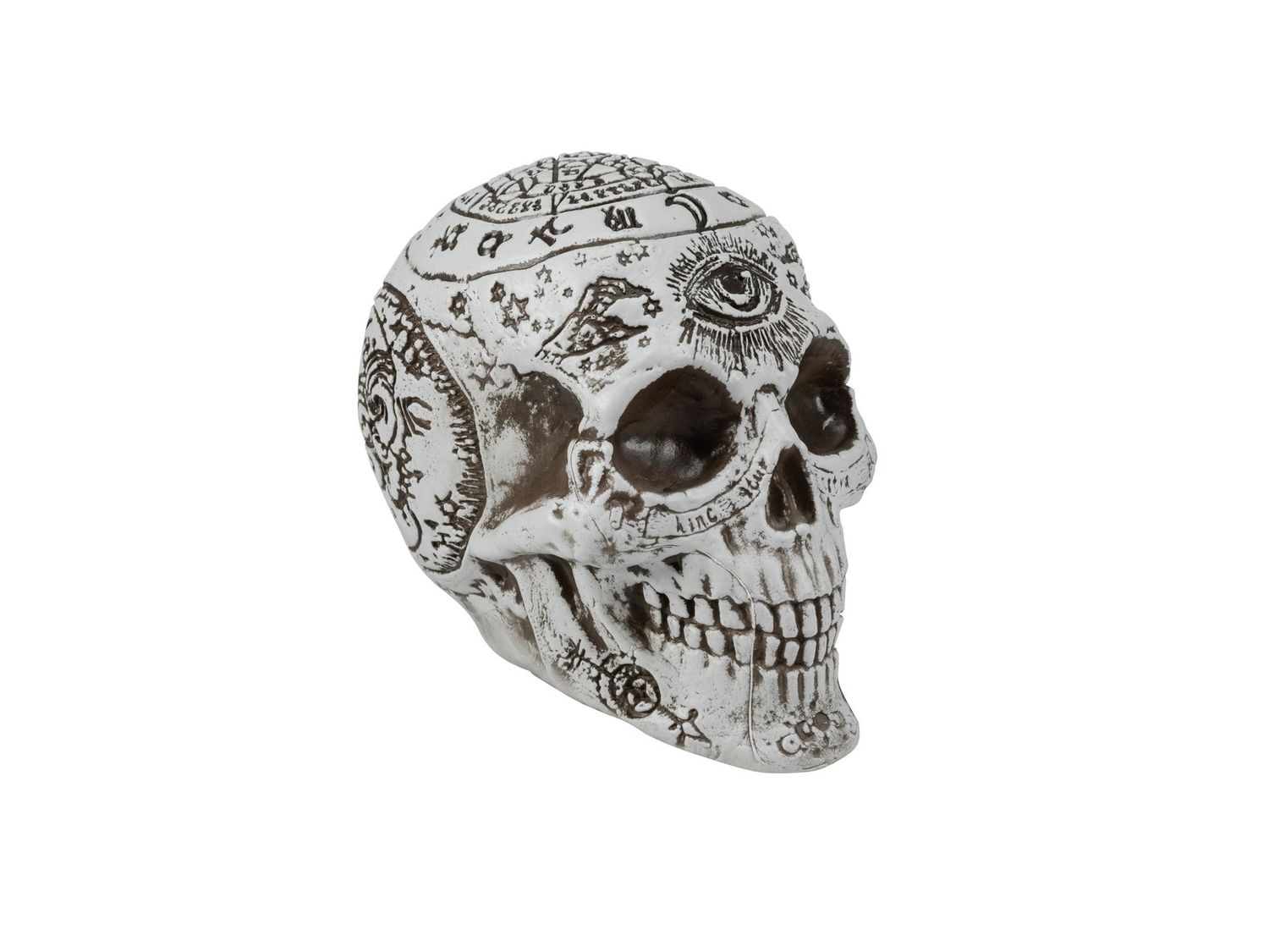 Halloween skull FARALDA with mystical signs and symbols, white-black, 4.7"x4"x7"/12x10x18cm
