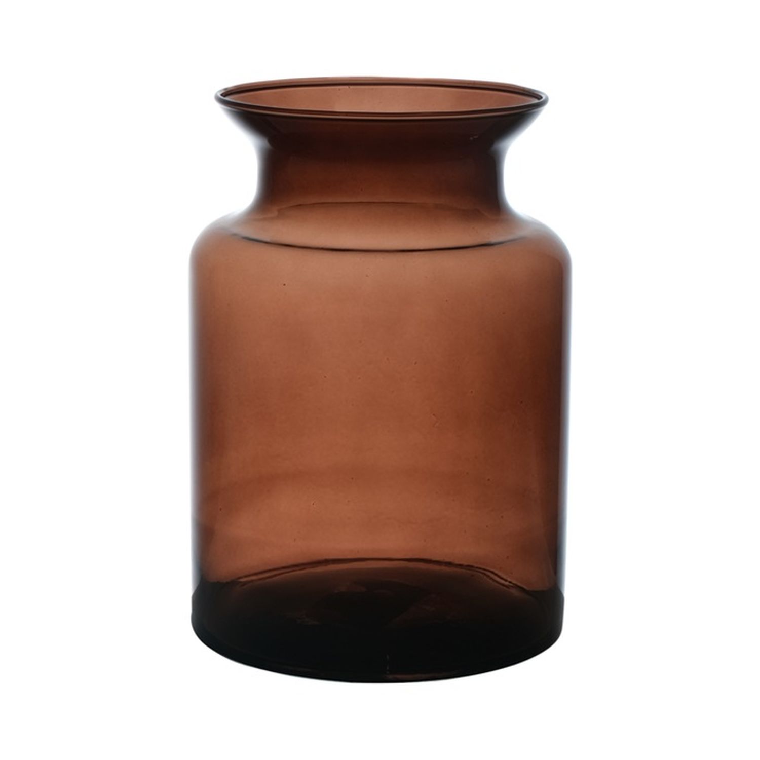 The candle holder HANNA EARTH in brown-clear colour is made of glass and measures approx. 8"/20 cm in height and approx. 5.5"/14 cm in diameter. A decorative element for your home, house, restaurant, hotel and much more.