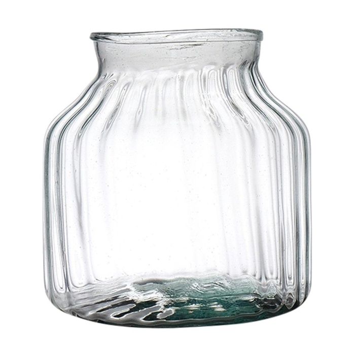 Lantern glass QUINN EARTH with grooves, recycled, clear-green, 20cm, Ø21cm