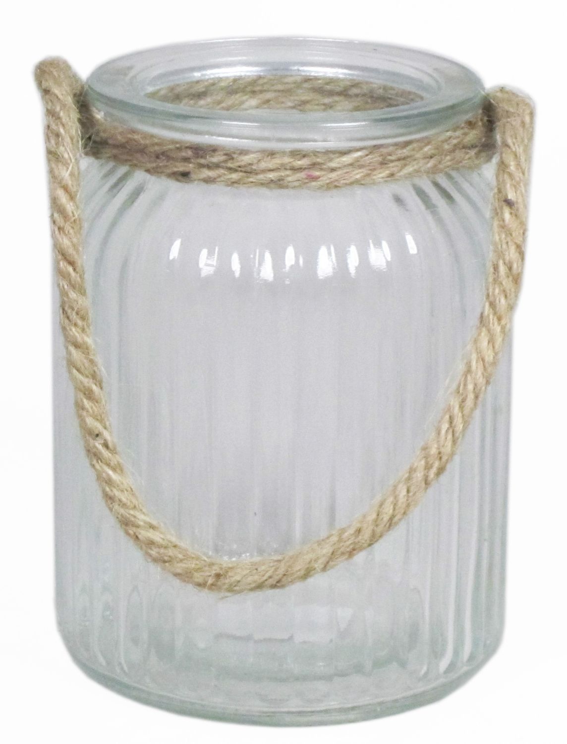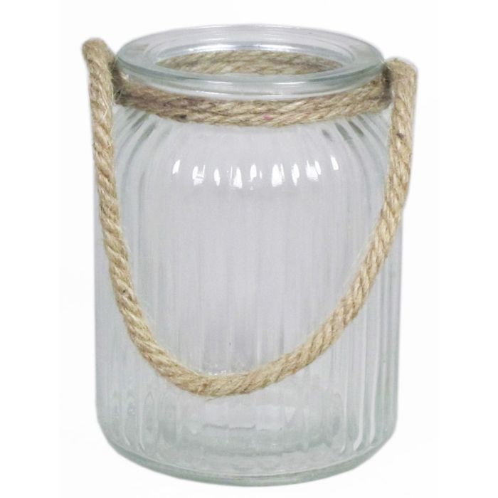 Lantern made of glass ADANNA with handle, vertical stripes, clear, 5.7"/14,5cm, Ø4.3"/11cm
