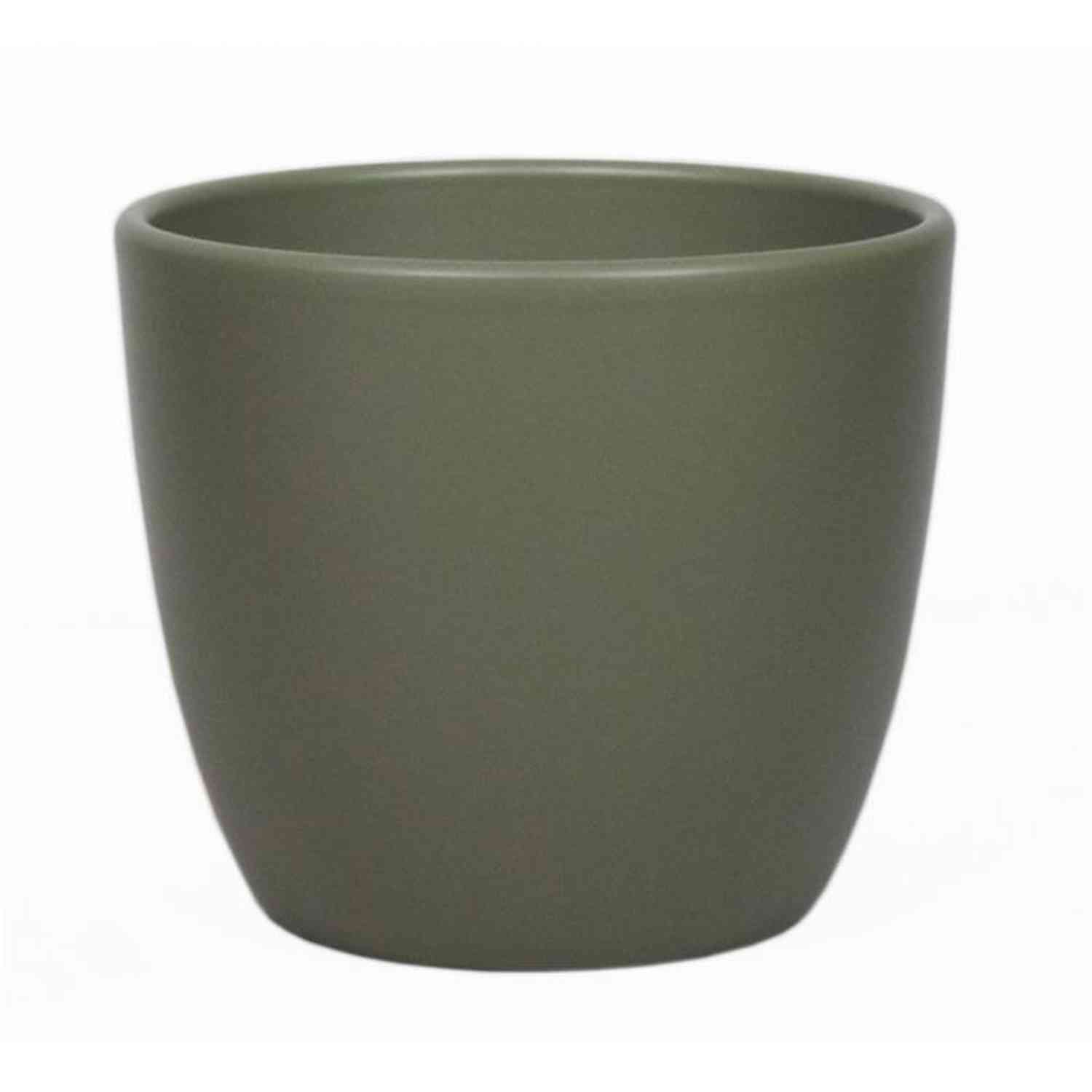 Planter TEHERAN BASAR made of ceramic in olive green colour with a diameter of approx. 13"/32 cm and a height of approx. 11"/27 cm.